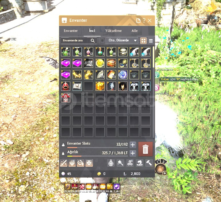 Hesaptaki çoğu içeriğin resmi mevcuttur sormak istediğiniz bir şey olursa mesaj yoluyla daha detaylı bilgi verebilirim88 Gün Kullanımda Değerli Paket72 Gün Kullanımda Kamasylve Kutsaması84 Gün Eski Ay Gizli Kitabı40 45 gün arasında kullanılmayan depoda duran değerli paket kutsama ve gizli kitap mevcutPazarda Satın alımda vell beklemedePvE İçeriği Olarak Tüm Kristalle...