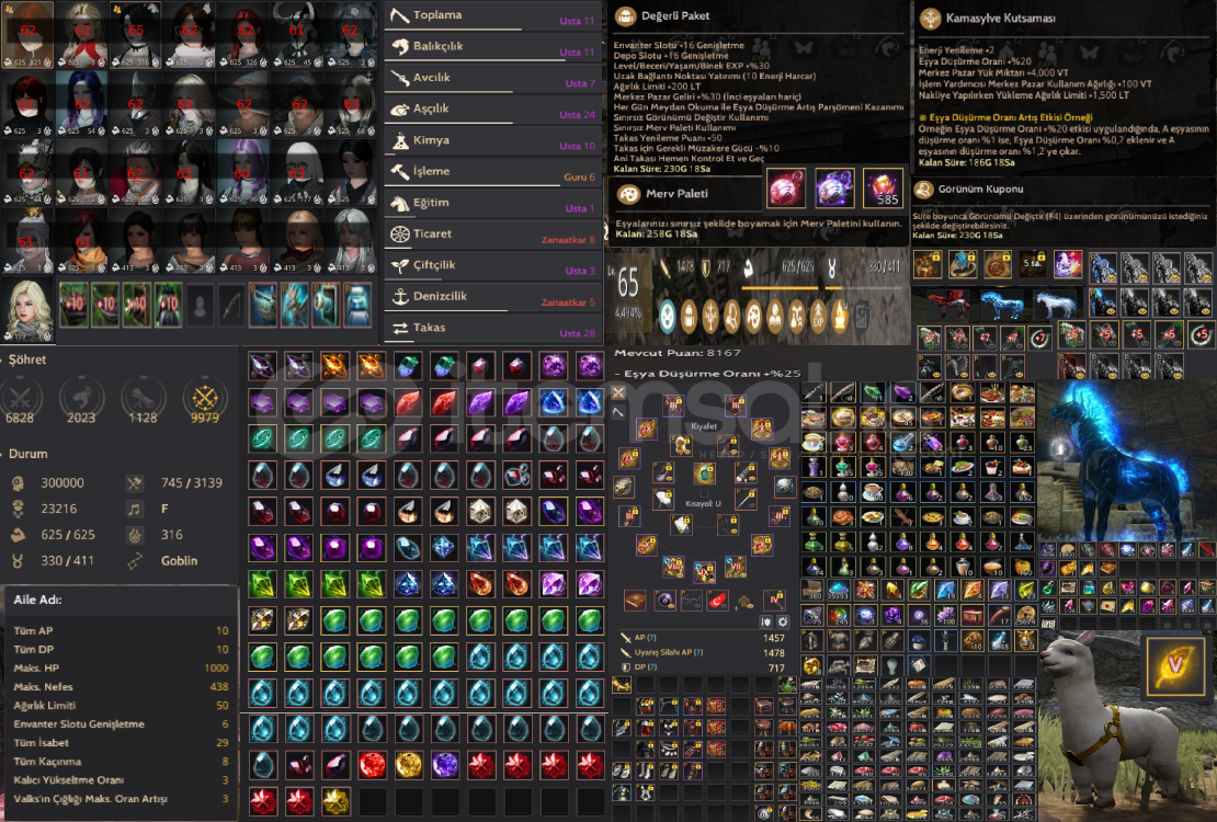 Görsellere ek olarak,4x Kabua eseri (Kamasylvia ve Genel Pve)Tüm eserler mevcuttur.65 level olan karakterde tüm ana görevler yapılmıştır.Düzenli oynuyorum ve gelişmeye devam ediyor hesap, ilermeler oldukça bilgileri güncelleyeceğim.End game hesap, benim eklemediğim veya sizin aklınıza takılan öğrenmek istediğiniz konular için iletişime geçebilirsiniz.Ciddi alıcılar i...