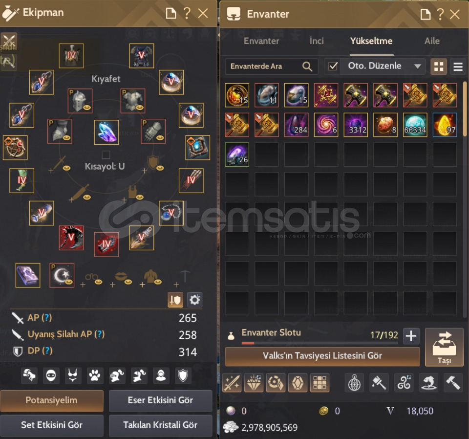 265Ap - 314Dp 61Level Berzerk karakter. 1Adet kullanılmamış Sezon hakkı. Görevler yapılmamıştır.Hesapta;72Gün değerli (17 günü aktif), 40gün Eski ay(aktif değil), 33Gün Kamasylve (aktif değil) Bufflar vardır.66334 Cron, 5 Adet istisnai Çekiç kutusu(açılmadı), 1 Adet Kadim çekiç, 2 Adet Primordiyal, 4 Adet J'nin Keskin çekici vardır. (Toplam 11 adet &c...