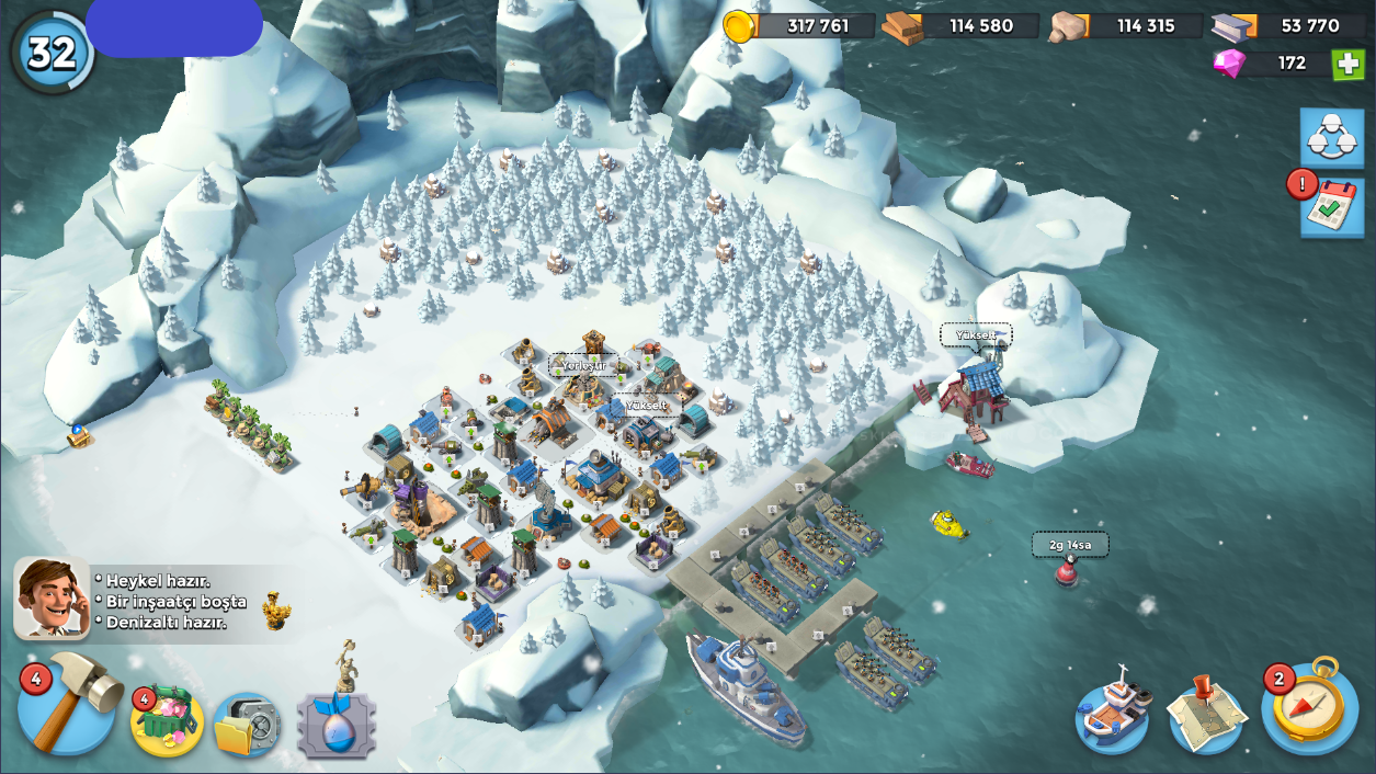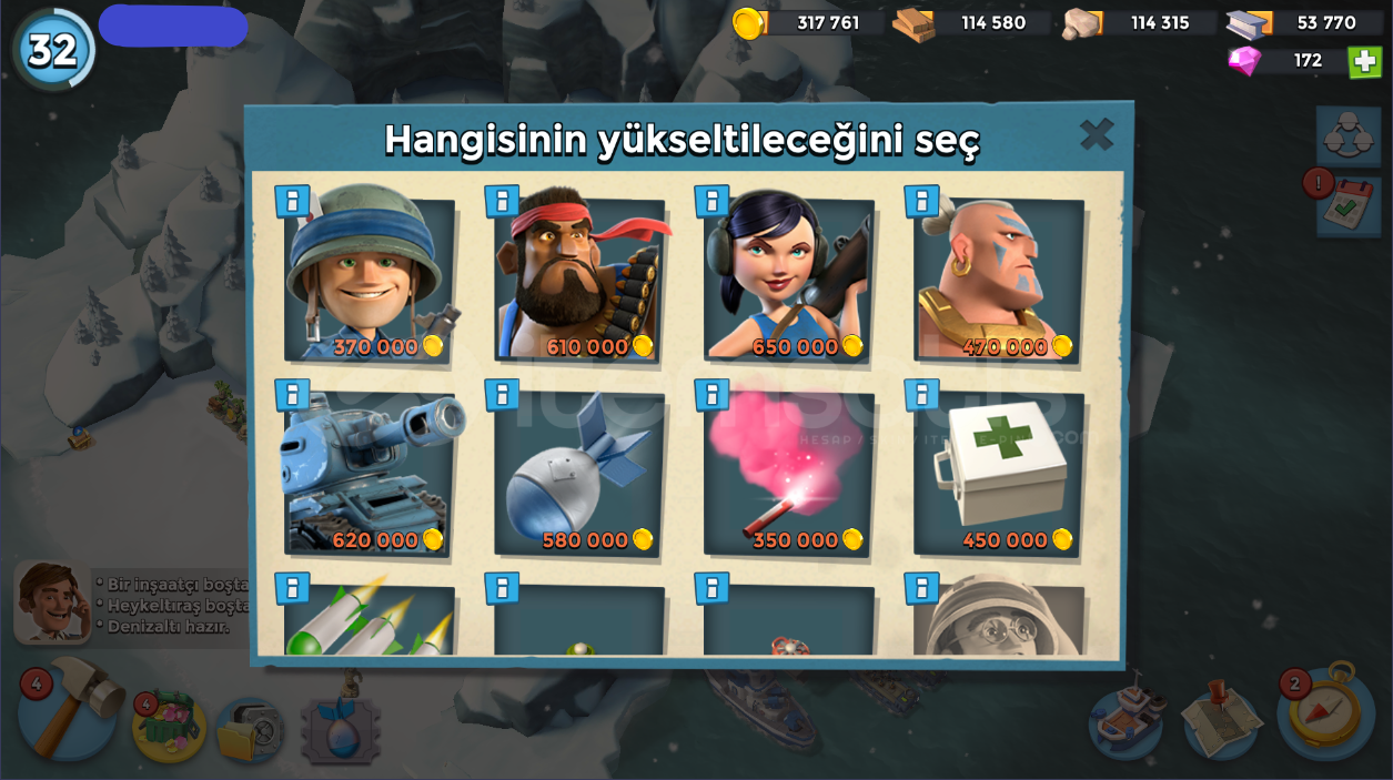 32 SeviyeTüm İçerik Resimlerde MevcutturKarargah: 13 levelÇıkartma Gemileri: 11 LevelGambot: 13 LevelDenizaltı: 6 LevelKeskin Nişancı Kuleleri 12 LevelHavan Topları: 9-10 LevelMakineli Tüfekler: 5-10 LevelToplar: 2-5 LevelDemir Madeni: 4 LevelTaş Ocağı: 7 LevelKereste Fabrikası: 8 LevelKonutlar: 7 LevelHeykeltraş: 3 LevelTaş Depoları: 6-7 LevelAltın Depoları: 7-8 LevelDemir Deposu: 5 LevelOdun Depo...