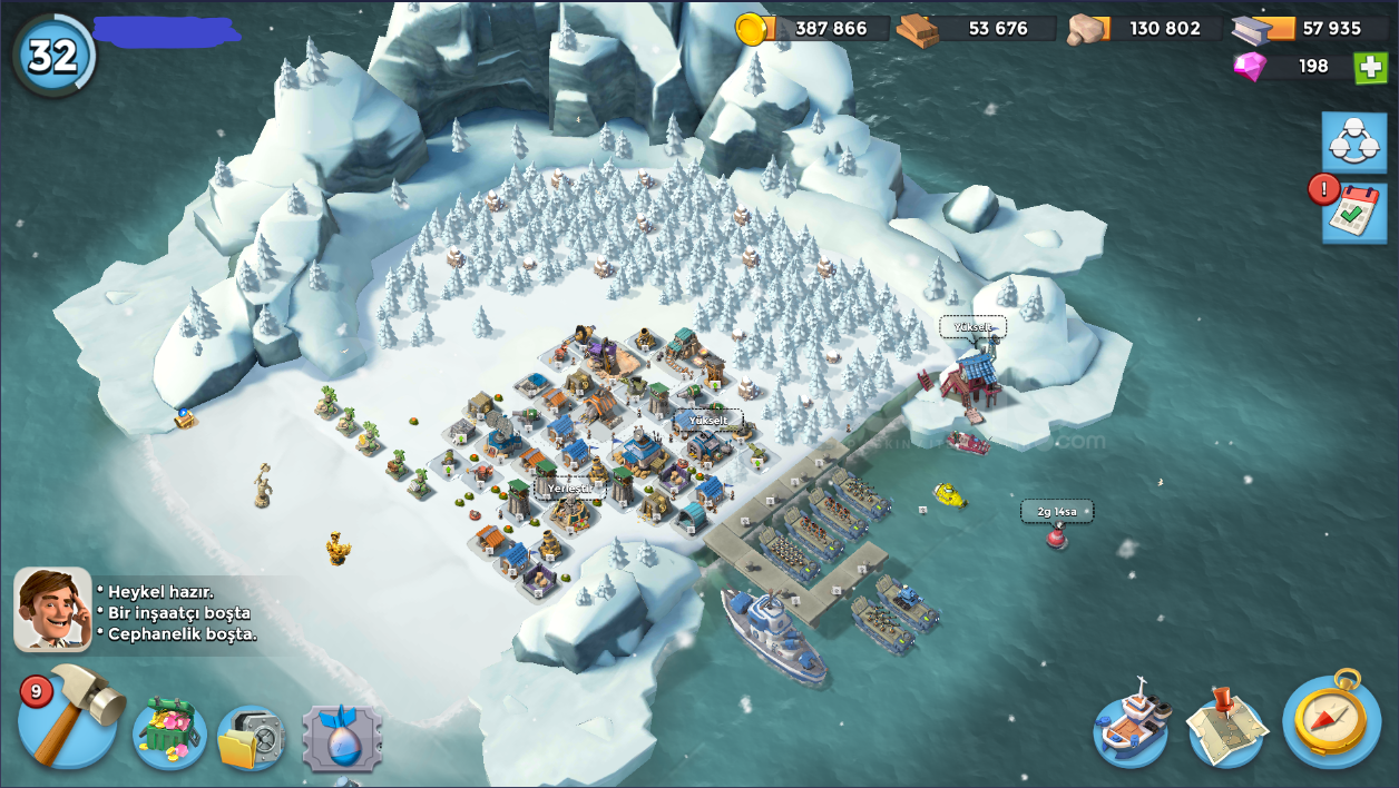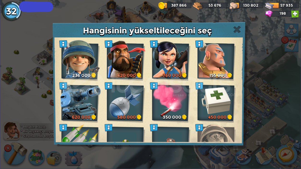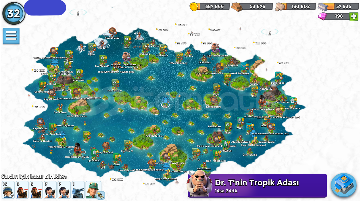 32 SeviyeTüm İçerik Resimlerde MevcutturKarargah: 14 levelÇıkartma Gemileri: 10-12 LevelGambot: 12 LevelDenizaltı: 5 LevelKeskin Nişancı Kuleleri 5-12 LevelHavan Topları: 10 LevelMakineli Tüfekler: 3-10 LevelToplar: 4-7 LevelDemir Madeni: 3 LevelTaş Ocağı: 7 LevelKereste Fabrikası: 8 LevelKonutlar: 7 LevelHeykeltraş: 3 LevelTaş Depoları: 6-7 LevelAltın Depoları: 8 LevelDemir Deposu: 5 LevelOdun Dep...