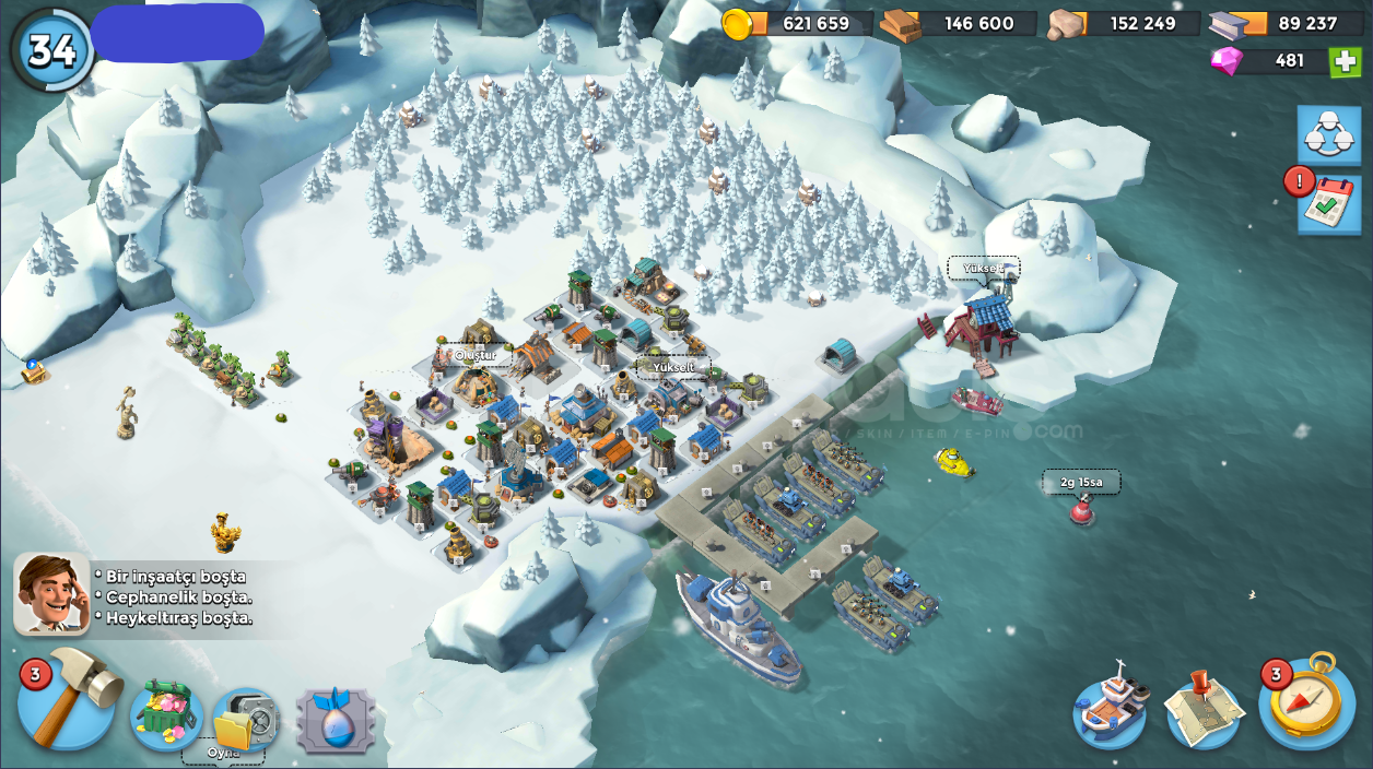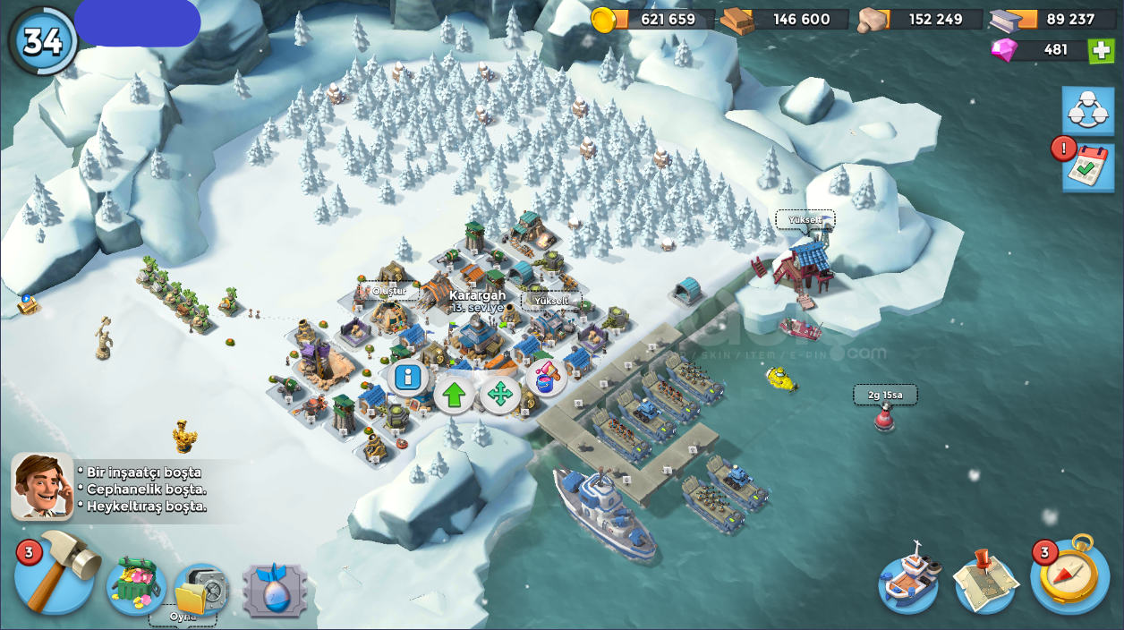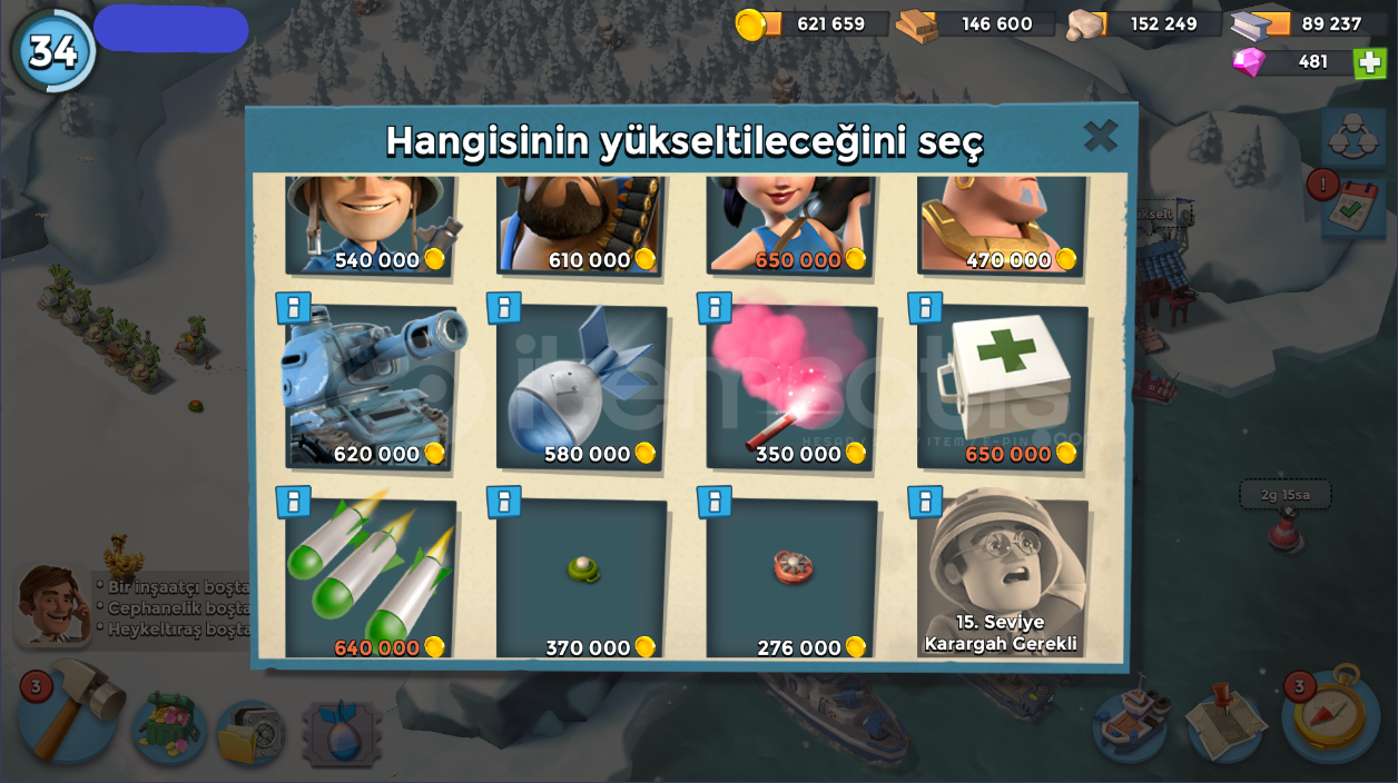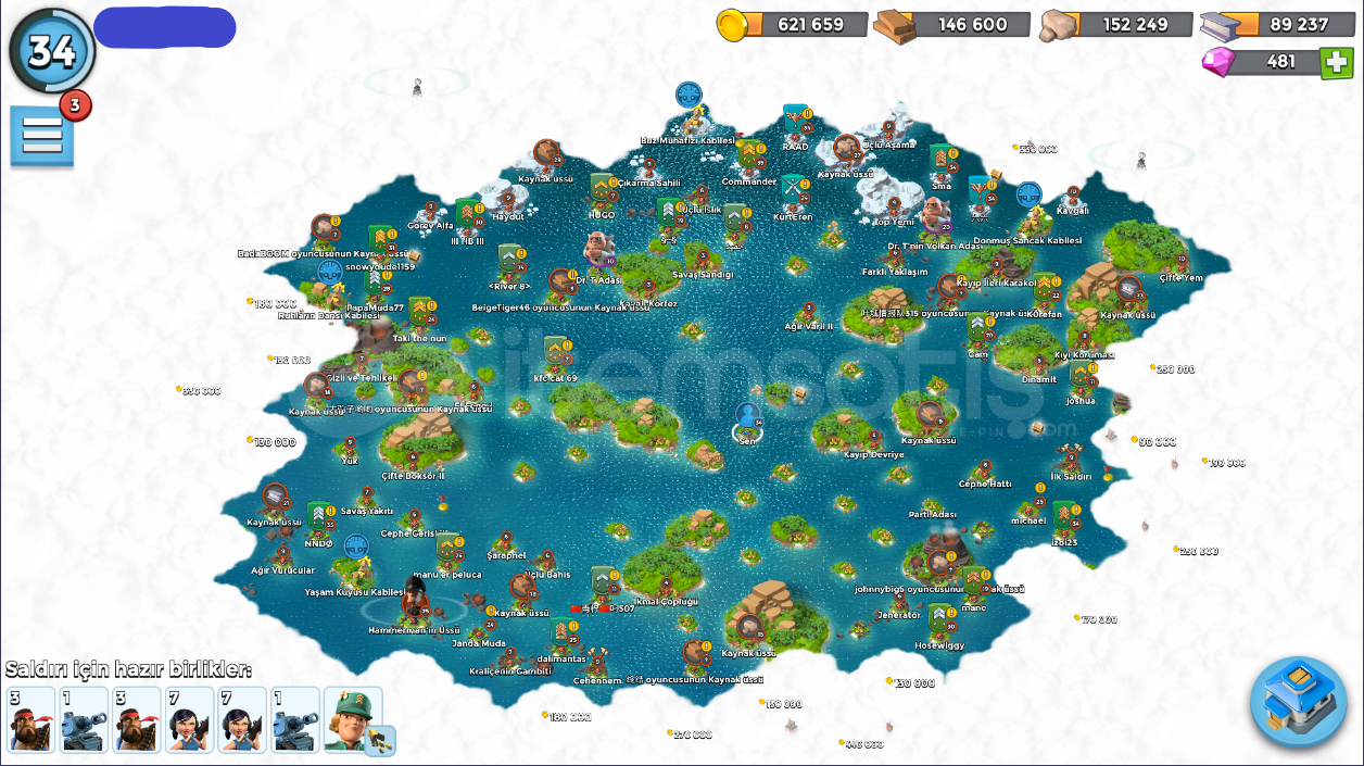 34 SeviyeTüm İçerik Resimlerde MevcutturKarargah: 13 levelÇıkartma Gemileri: 10-11 LevelGambot: 12 LevelDenizaltı: 6 LevelKeskin Nişancı Kuleleri 12-13 LevelHavan Topları: 10 LevelMakineli Tüfekler: 11 LevelToplar: 7-8 LevelDemir Madeni: 4 LevelTaş Ocağı: 7 LevelKereste Fabrikası: 8 LevelKonutlar: 7 LevelHeykeltraş: 4 LevelTaş Depoları: 7 LevelAltın Depoları: 8 LevelDemir Deposu: 5 LevelOdun Depola...