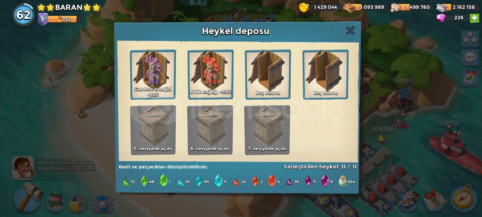 24 Seviye Karargah, 62 Seviye, 455 Tozlu BOOM Beach Hesabım satılıktır. emek hesabıdır. fiyatta pazarlık olabilir. isim değiştirme 500 elmastır.Heykelleri Gambot 16 39 17 totalde 72Hasar 28 13 11 13 totalde 65Sağlık 34 12 12 13 totalde 71