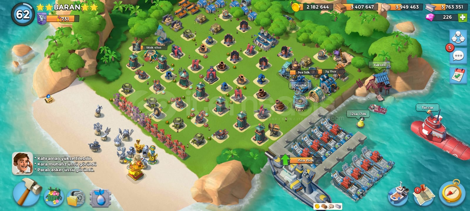 24 Seviye Karargah, 62 Seviye, 455 Tozlu BOOM Beach Hesabım satılıktır. emek hesabıdır. fiyatta pazarlık olabilir.