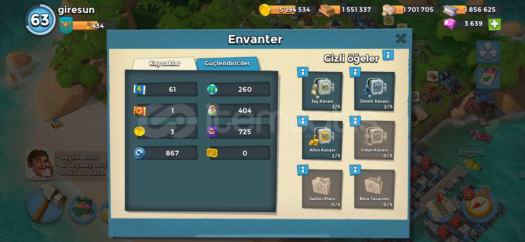 TAŞ ALTIN VE DEMİR KASALARI 2’ŞER TANE MEVCUTTUR. BU ÖĞELER OYUN İÇİNDE ÇOK DEĞERLİDİR.