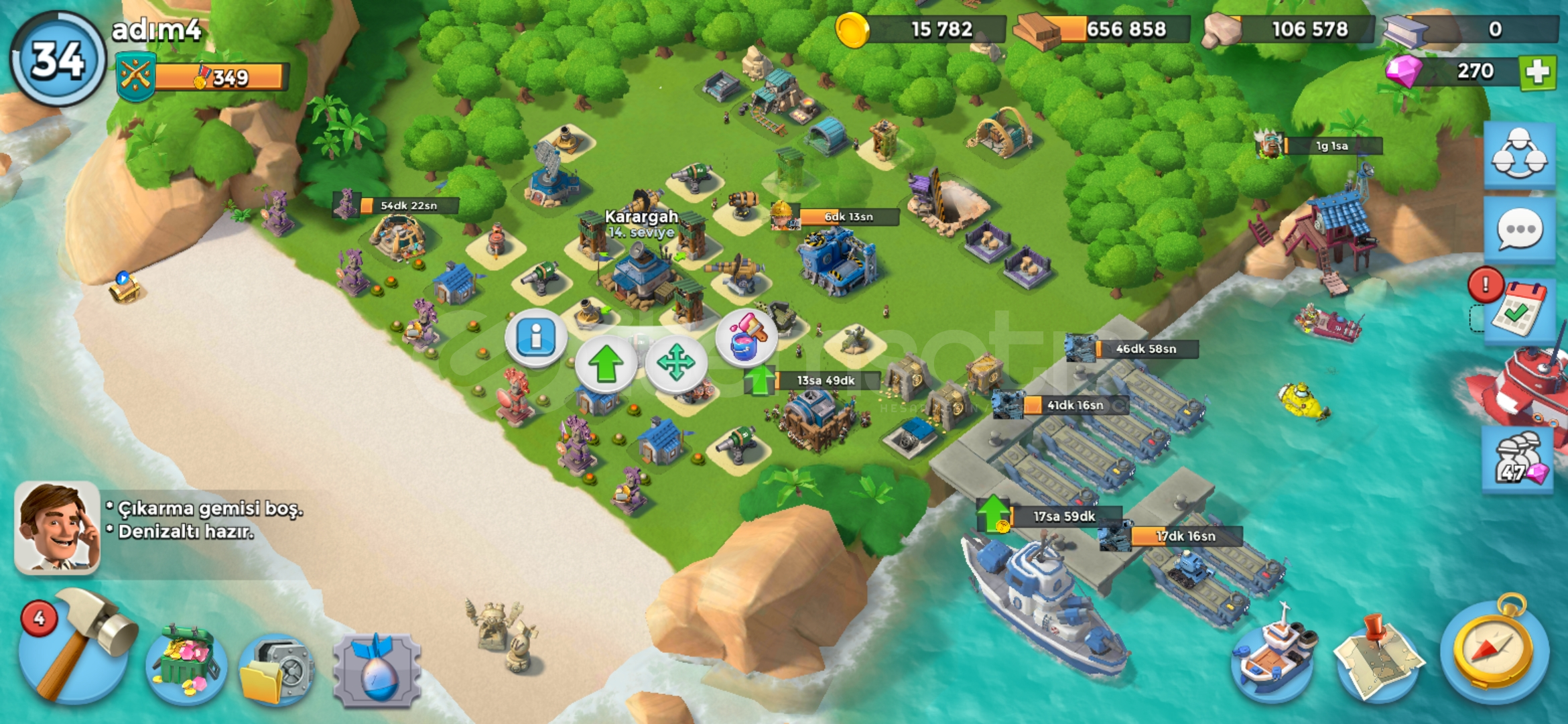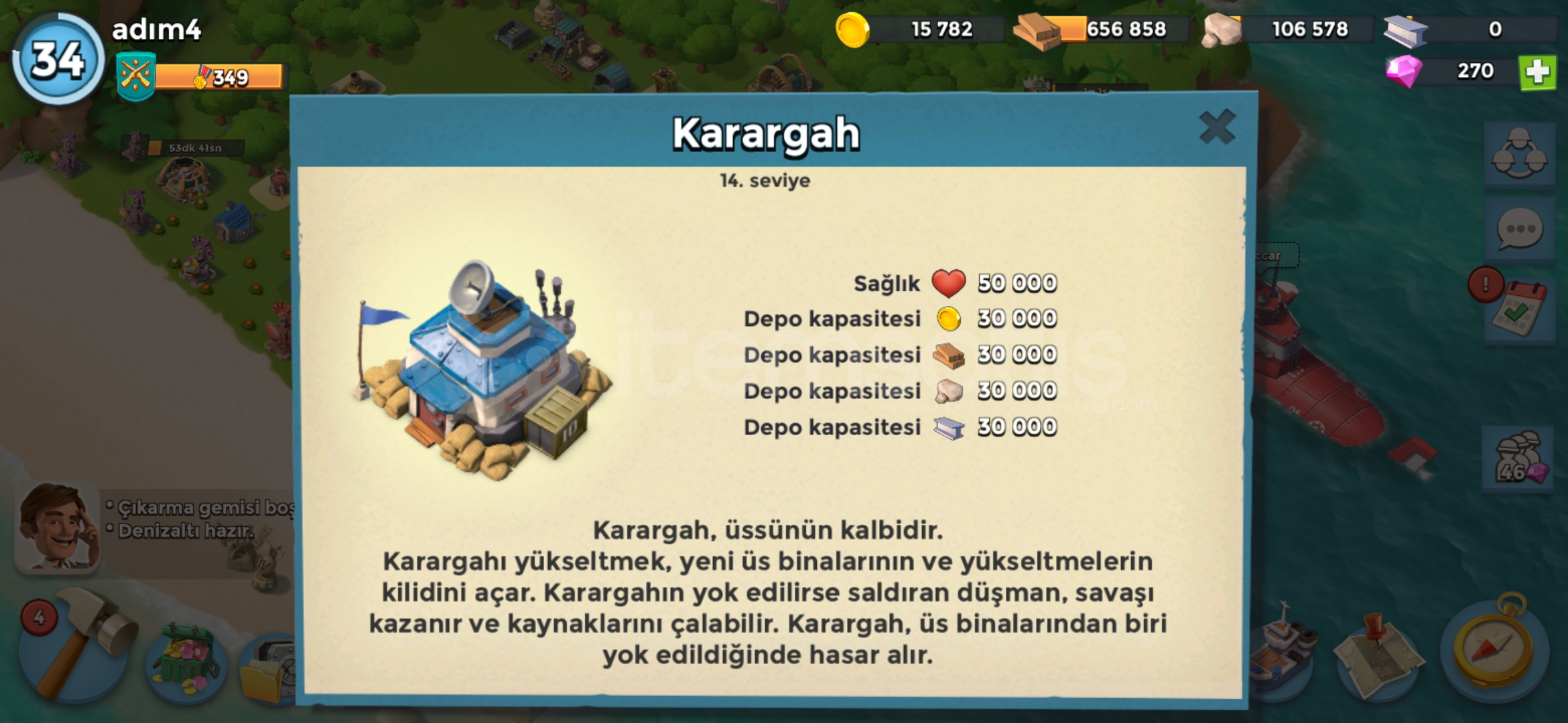 Satılık 34. Seviyede karargah binası 14 level seviyesine göre çok şey full uygun fiyatlı herşey fotolardaki gibi