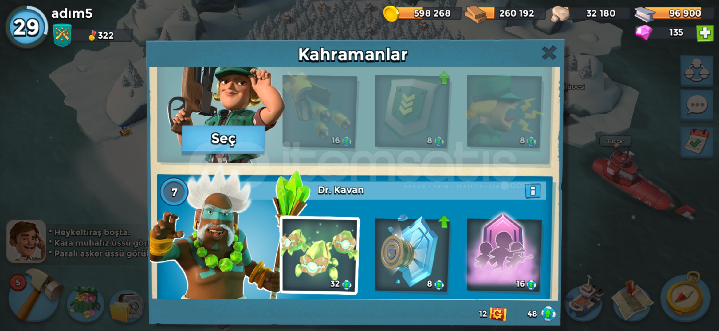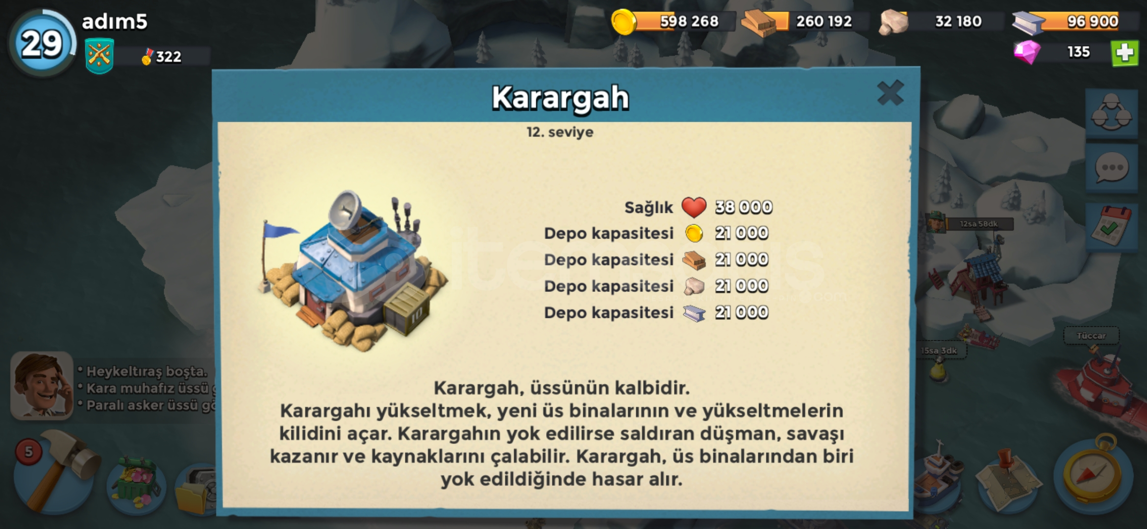 Gelişmiş düzeyde satılık boom beach 12. Seviye karargah 29. Duzeyde güzel taşlar mevcut . Gelişmekte olan bir timde yardımcı lider . Supercelle kayıtlı .