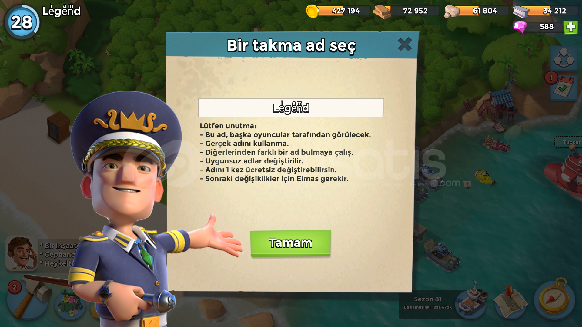 Karargah 11. Seviyede.Tank birliği açık.2 adet kahraman açık.Ücretsiz isim değiştirme hakkı var.Maile bağlanarak teslim edilir.En kısa sürede teslimat.Parti hoparlörleri dekorasyonu mevcut.Yüksek müşteri memnuniyeti.