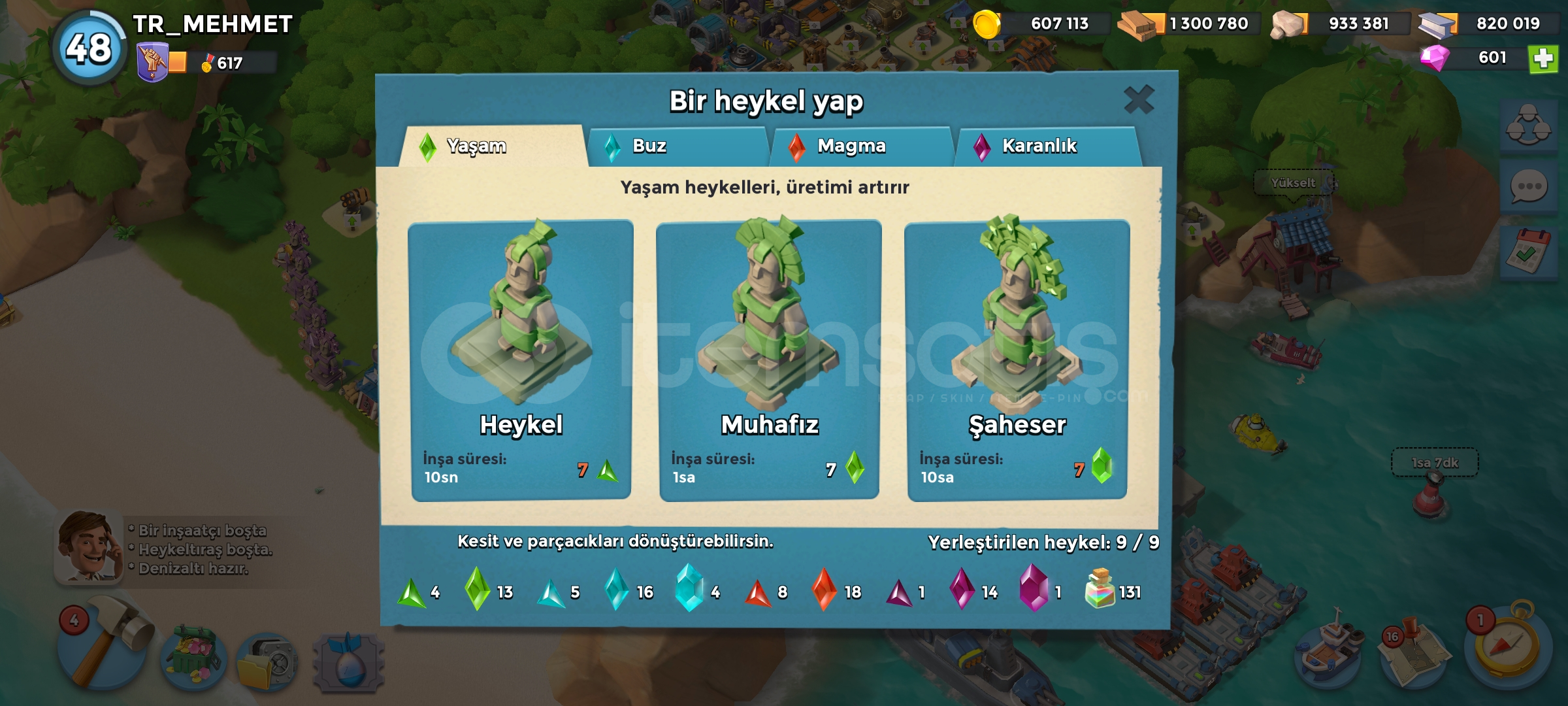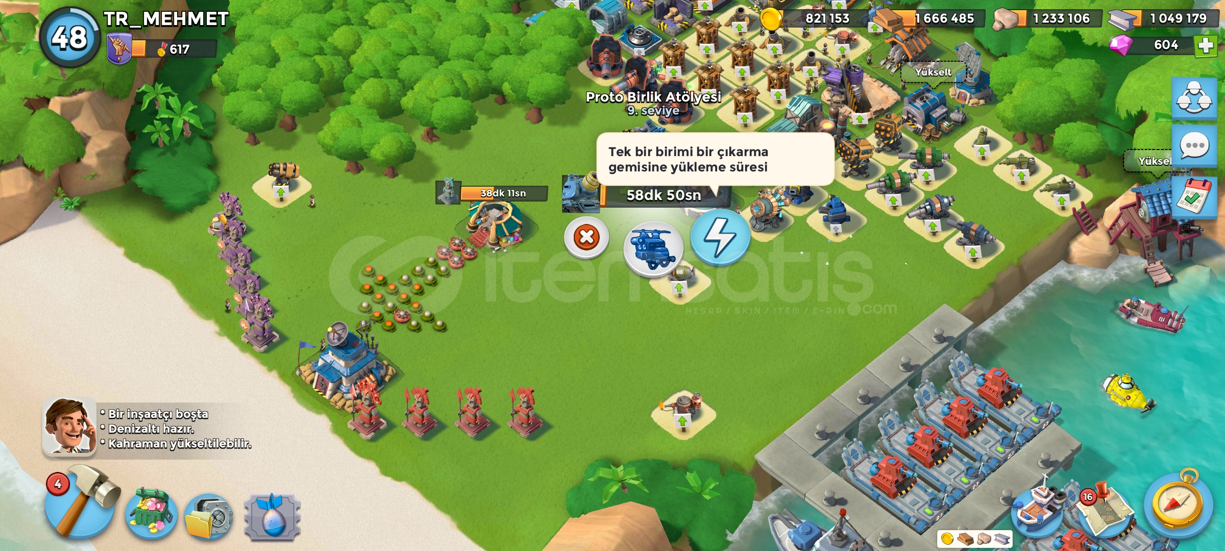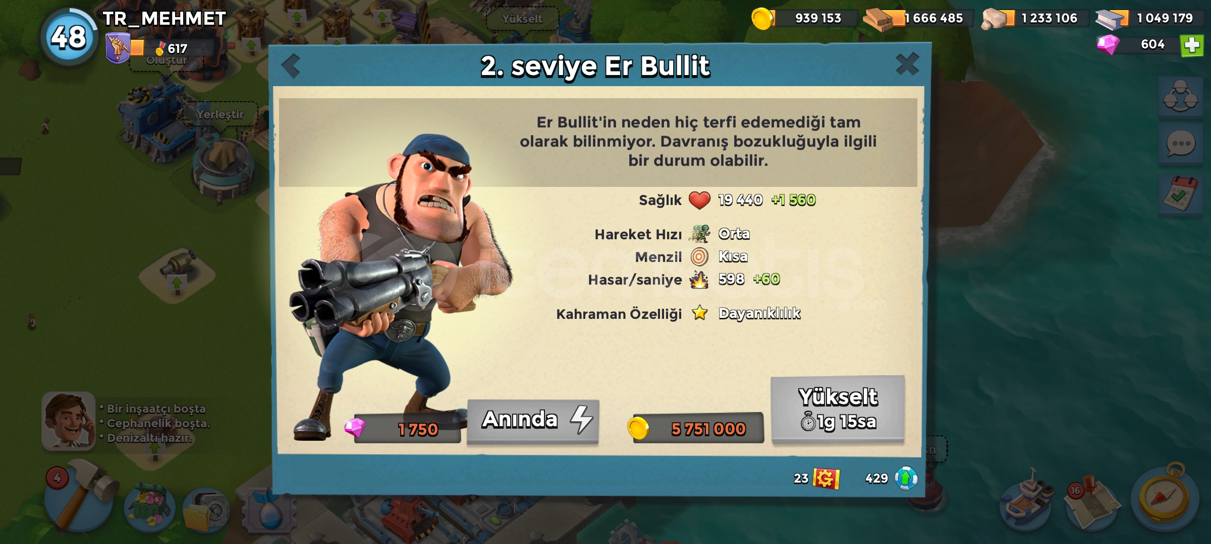 Hesapta 1000 lira değerinde elmas ve 131 adet toz bulunuyor biçok birlik ve yüksek seviyedeKahramanlar aynı şekilde MEŞALE,TANK,ZOOKA,Kahramanlar Çavuş brick,Dr kavan,everspar, er Bullit açık Proto birlik atölyesindede var5 adet hasar heykeli5 adet gabot heykeli1 adet kaynak heykeli varKarargah 19 seviye