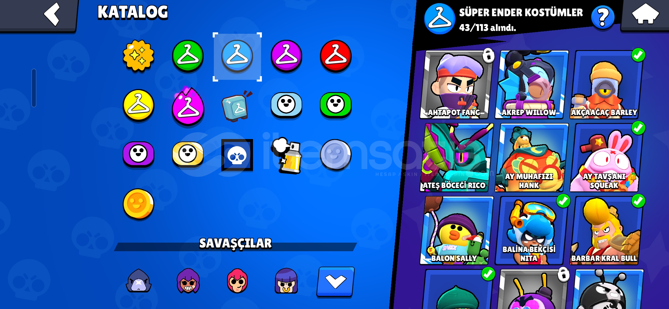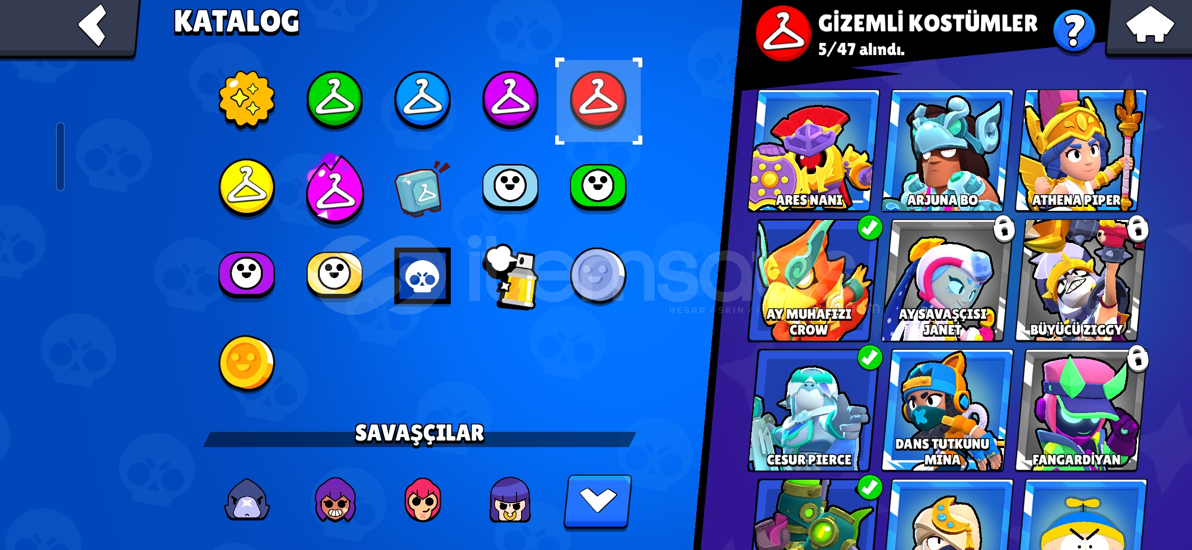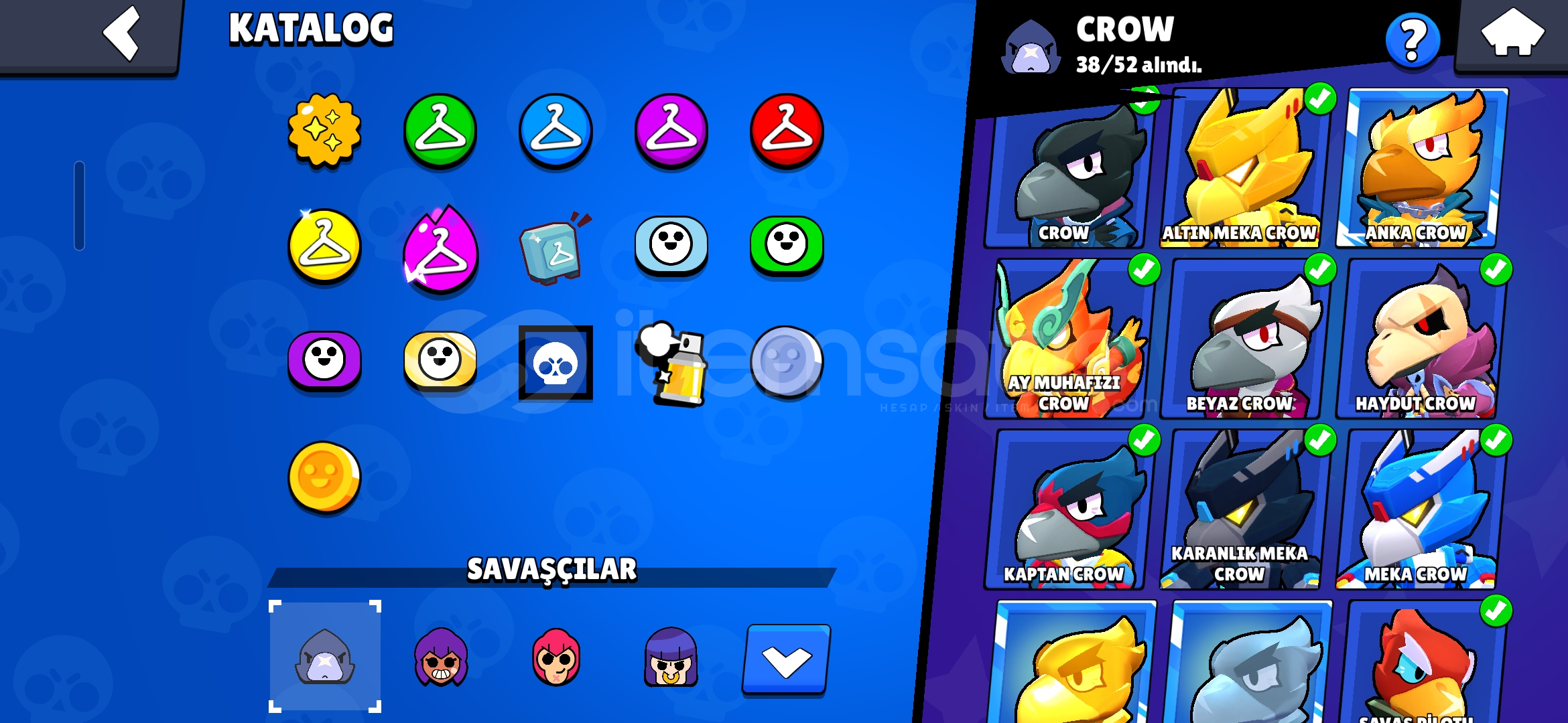 162kostüm olan 22k kupa 80 karakter çok iyi hesaptır şansı yüksek özellikle crow kostümleri dikkat çe...