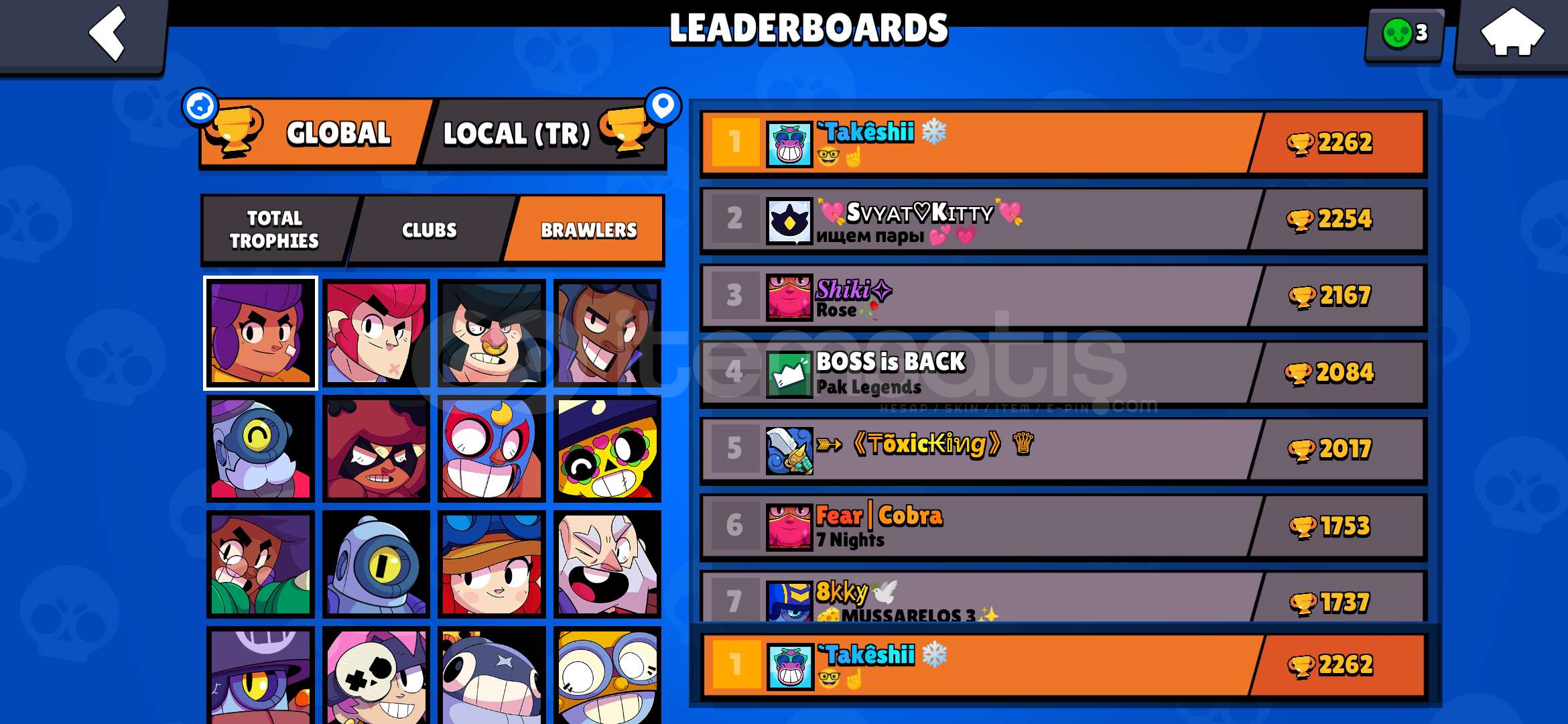 Kasılacak karakter minimum 700 Kupa ve 10 Seviye olmalıdır, Fiyat buna göre belirlenmiştir.Karakterin Yıldız gücü ve Aksesuarı olması zorunludur.2 Saat içerisinde tamamlanır ve teslim edilir.Boost işlemi hesaba girilerek yapılır, boost bittiğinde çıkış videosu atılarak işlem sonlandırılır.