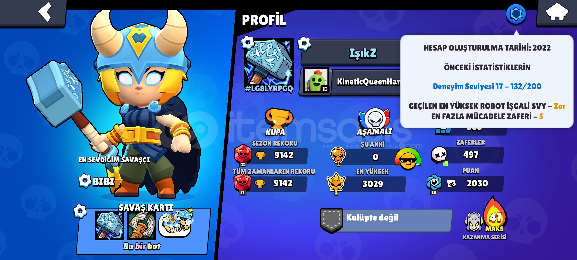 Hesabımızın Kupasının Düşük Olduğunun Farkındayız Lakin Bilerek Yapılmıştır Alan Şanslı Kişi Girip Kasabilir Hesapta 10 Efsanevi Kostüm Vardır 21 Adet Destansı Kostümün Yanında 40+Daha Kostum Mevcuttur Toplam Kostüm Sayısı 60+'Dır 2 -3 Kez Brawl Paşa Açılmıştır Brawl Pass'ın Yanı Sıra 3+ Gizemli Kostümde Me...
