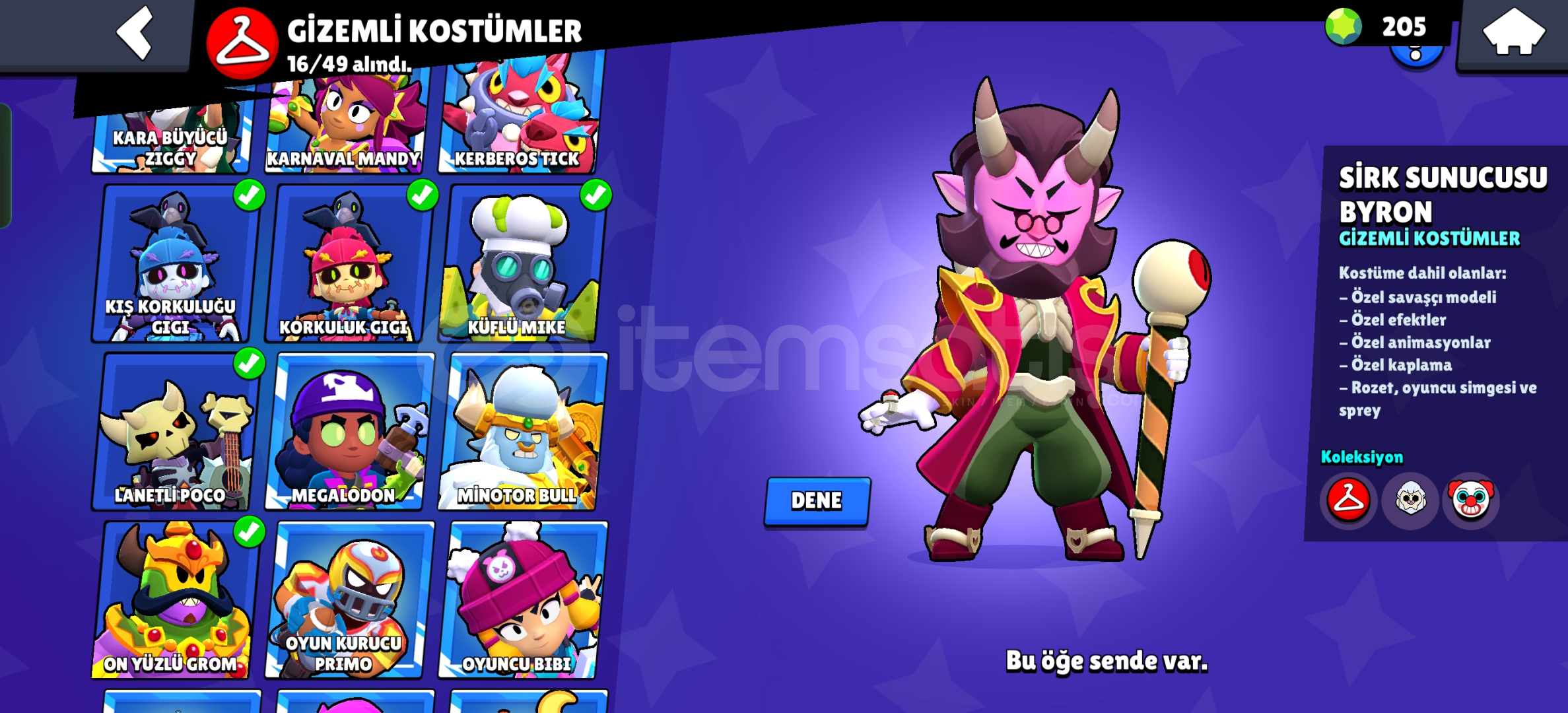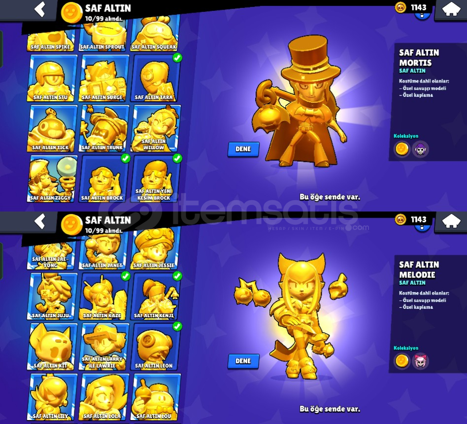 10 tane saf altın kostüm,tüccar gale, meka surge, kötü collette, kral lou, samuray ruffs, altın el belle, kötü buzz, ninja ash, asi lola, ajan colt, tıknaz darryl, sokak ninjası tara gibi birçok ender kostüm vardır.