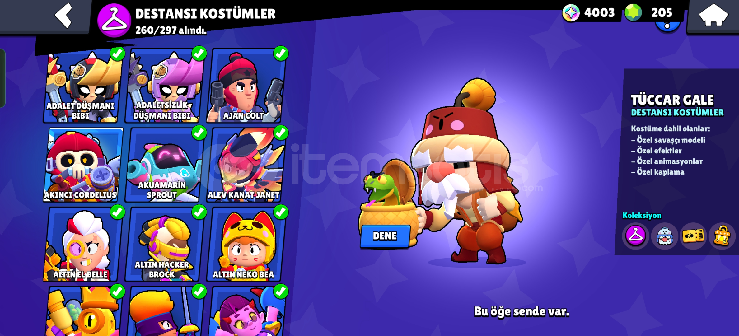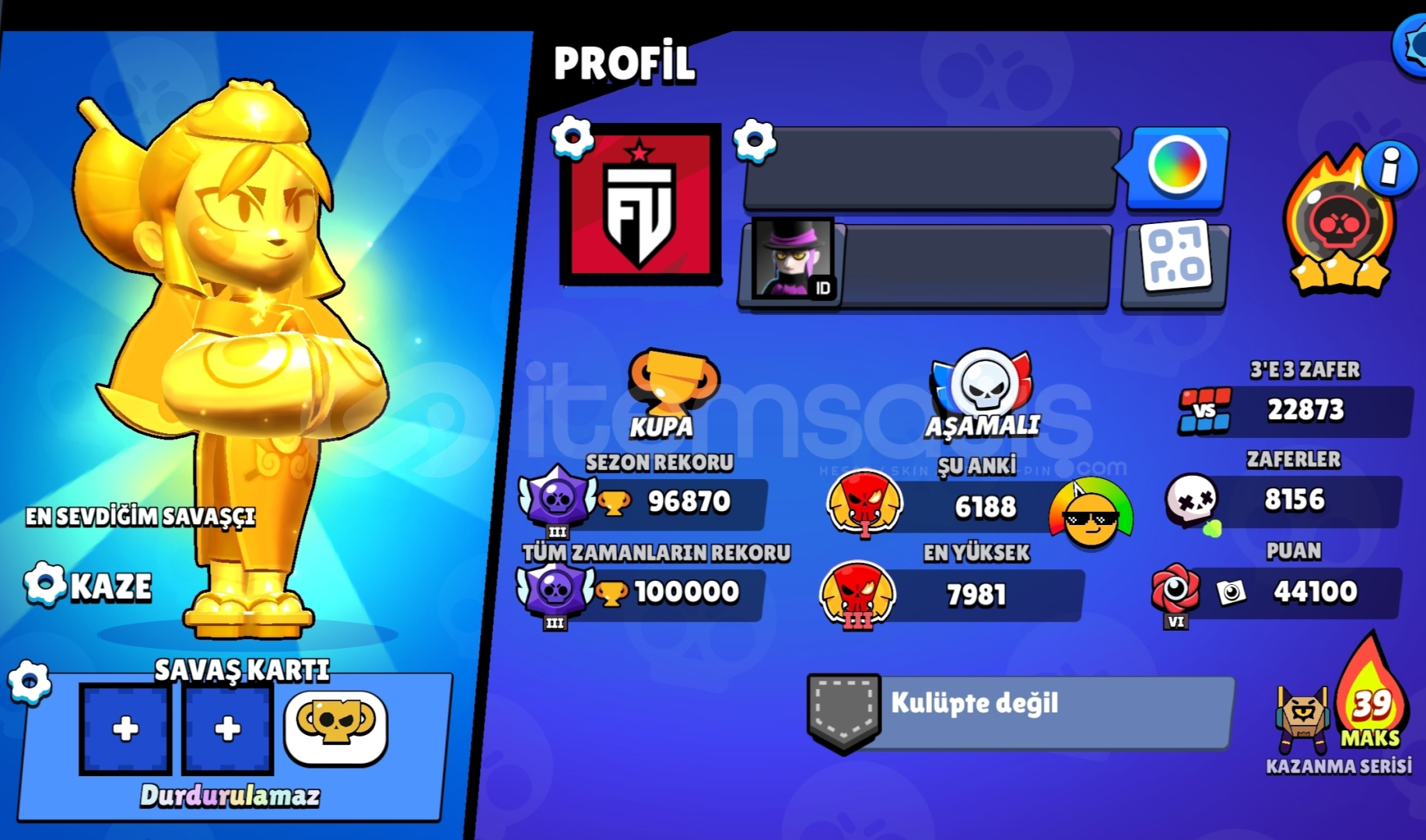 Hesabımız 2019 kurulumdur.Hesapta 98 tane 11 seviye karakter vardır, bunların 89u hiperşarjlıdır.pierce hariç bütün karakterlerde 2 yıldız gücü 2 aksesuar ve 2 eşya vardır.10 tane saf altın kostüm,tüccar gale, meka surge, kötü collette, kral lou, samuray ruffs, altın el belle, kötü buzz, ninja ash, asi lola, ajan colt, tıknaz darryl, sokak ninjası...