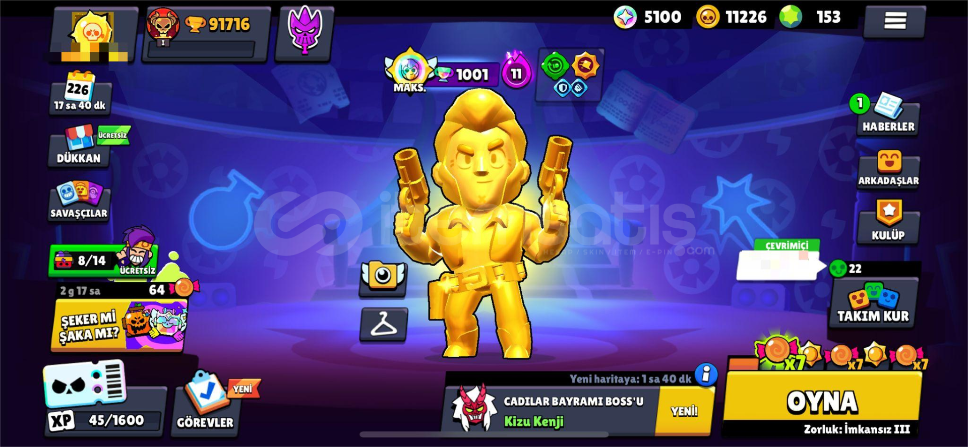 Tüm Karakterler Max RankTüm Karakterler 11 SeviyeBirbirinden Nadir KostümlerHesap 2020 HesabıdırPrestij BulunmaktaGüneş 3 ŞöhretindedirÇoğu Karakterle sıralamaya girilmiştir3 Adet Saf altın kostüm bulunmaktadırOld master bulunmaktadırAktif olarak Brawlpassplus açıktırGüven Konusunda Hiç Bir Problem Yaşanmaz 11+ Başarılı işlem 10/10 Değerlendirme ile Hi...
