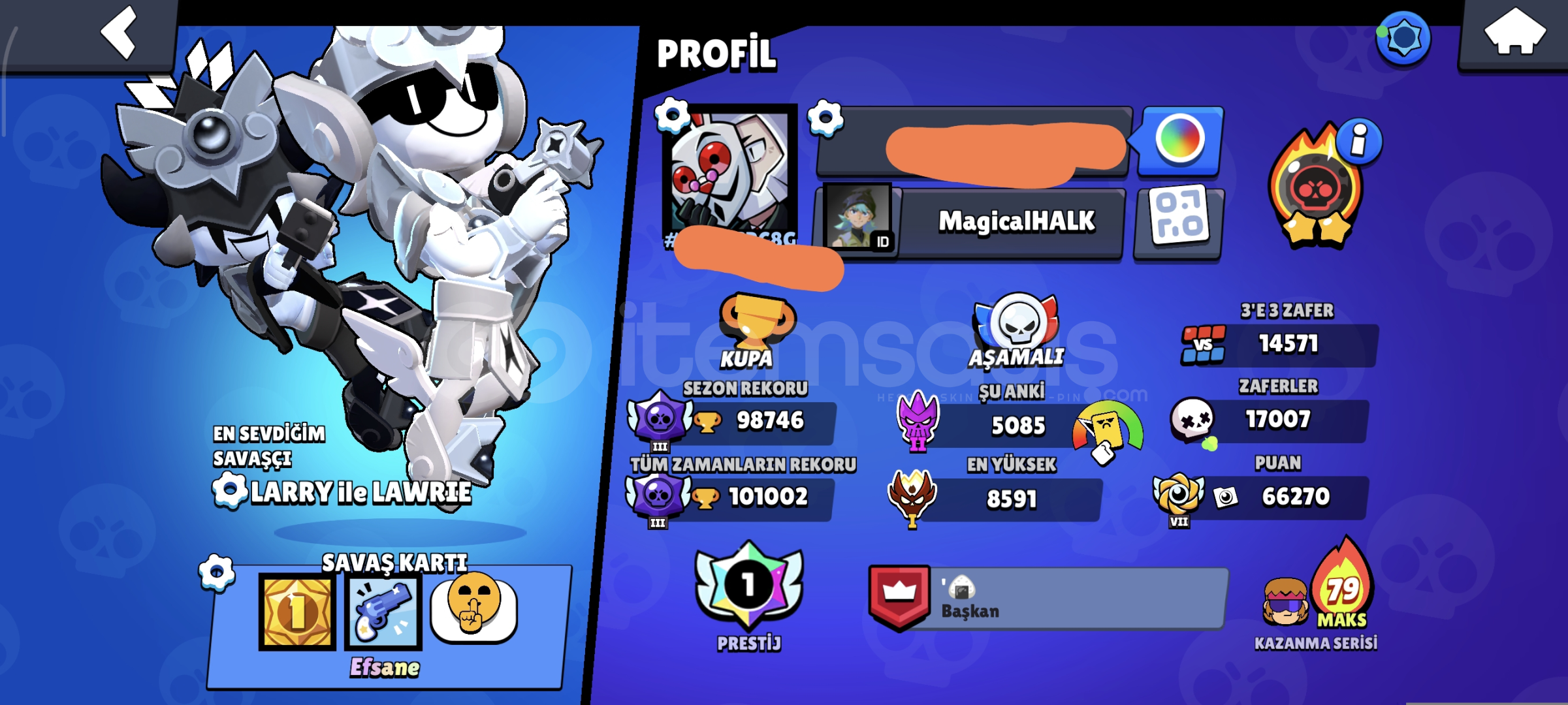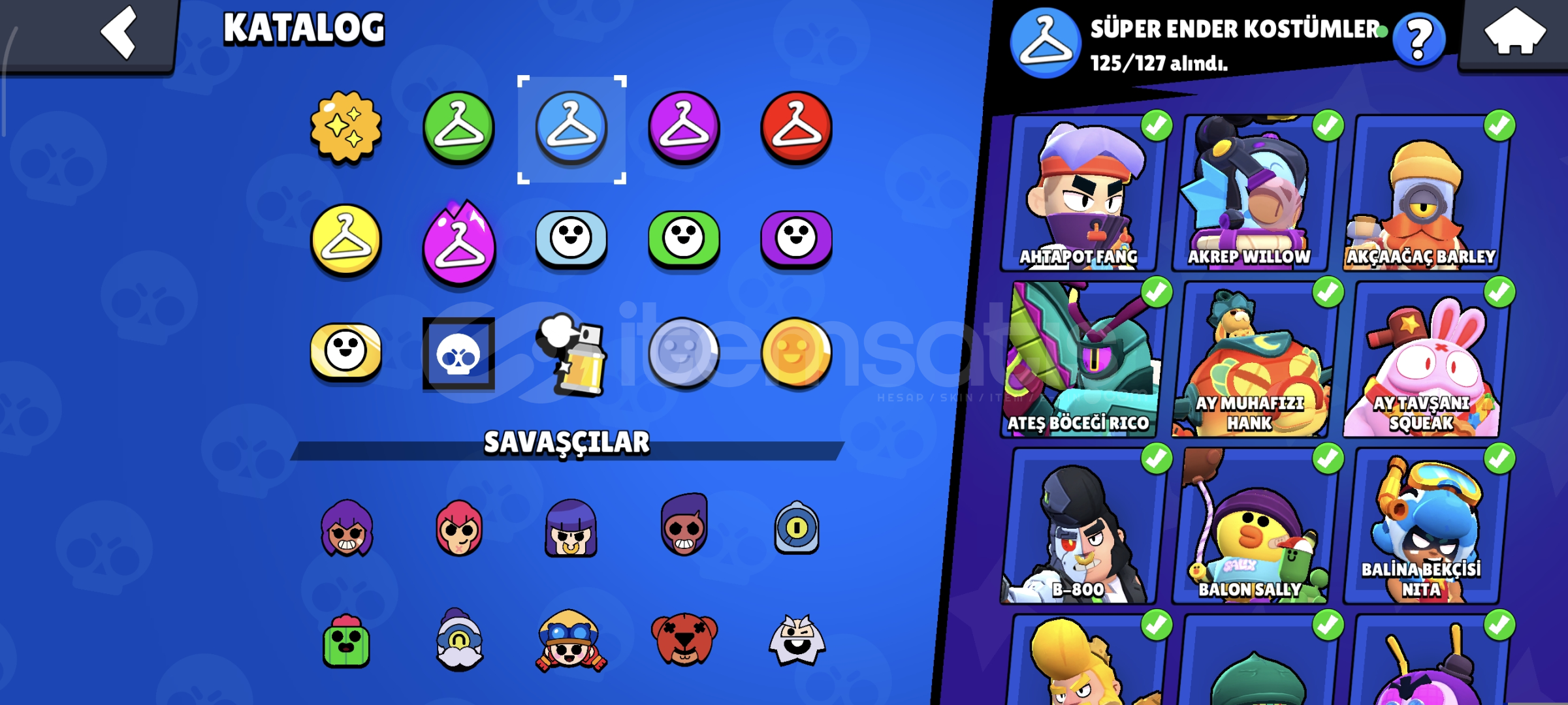 • Yaklaşık 100.000 kupa• Tüm karakterler açık ve MAX seviye• Power 11, gadget ve star power’lar tam• Ustalar Ligi’ne ulaşılmıştır• Hesap oldukça doludur, çok sayıda kostüm bulunmaktadır• İçerisinde nadir / eski kostümler mevcuttur• Emek verilmiş, koleksiyon değeri olan hesaptır• Supercell ID değiştirilebilir• Hesap tem...