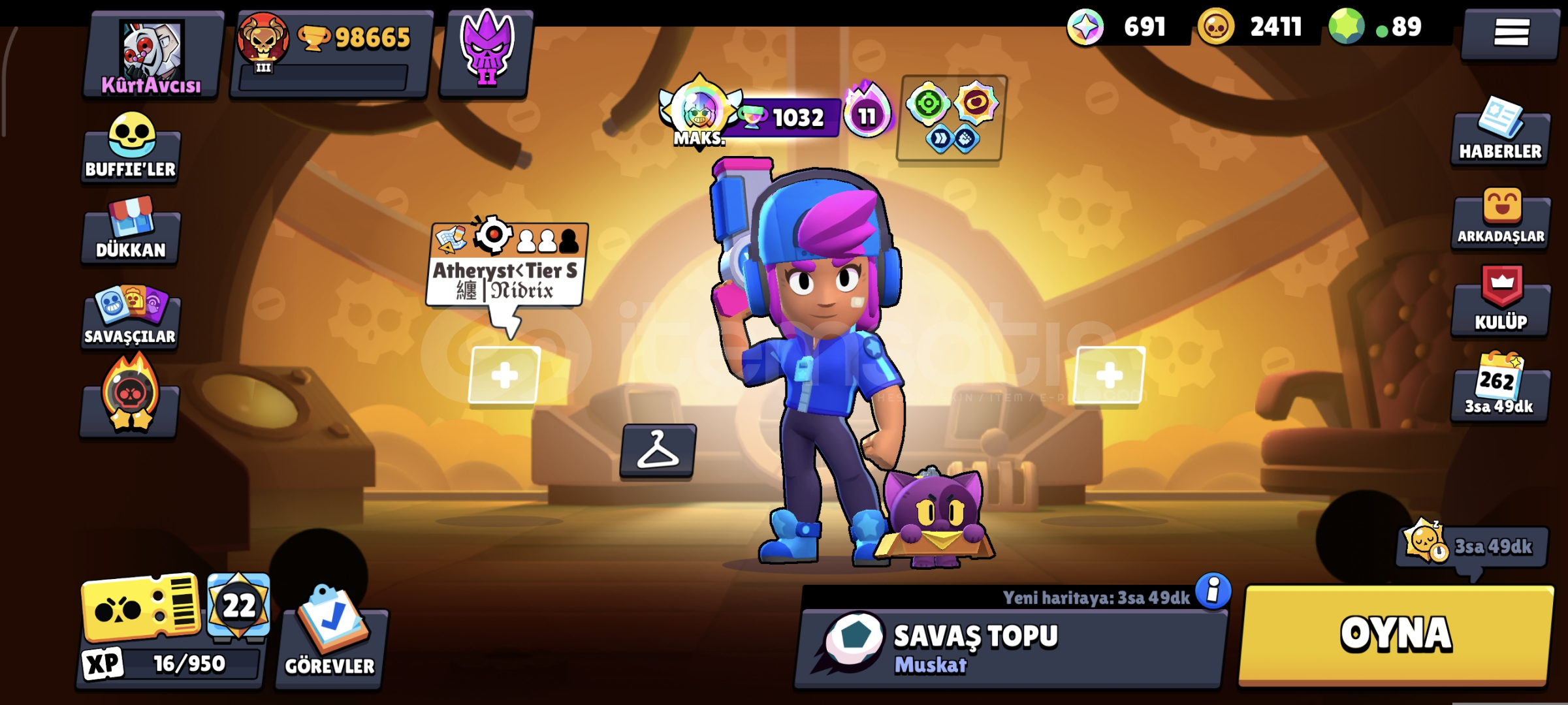 • Yaklaşık 100.000 kupa• Tüm karakterler açık ve MAX seviye• Power 11, gadget ve star power’lar tam&bu...
