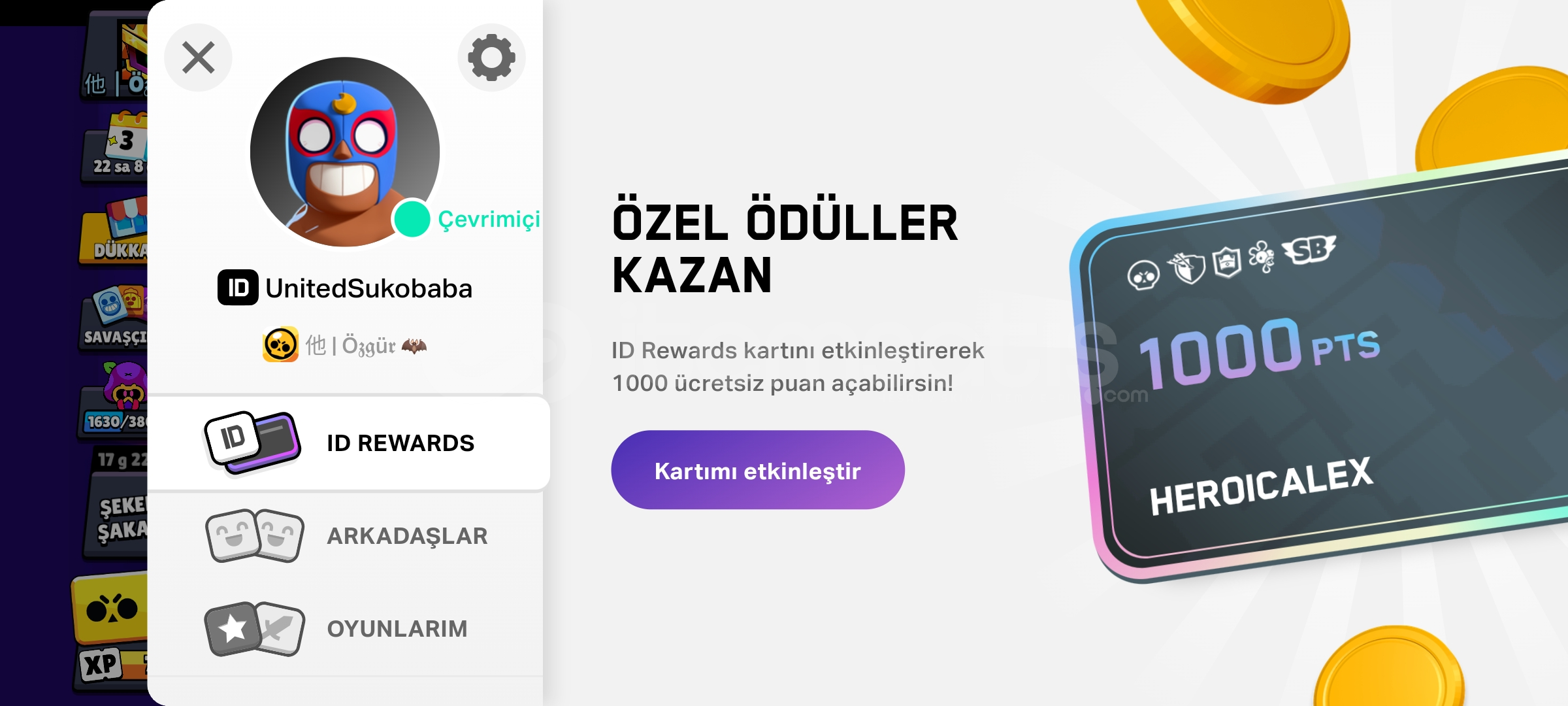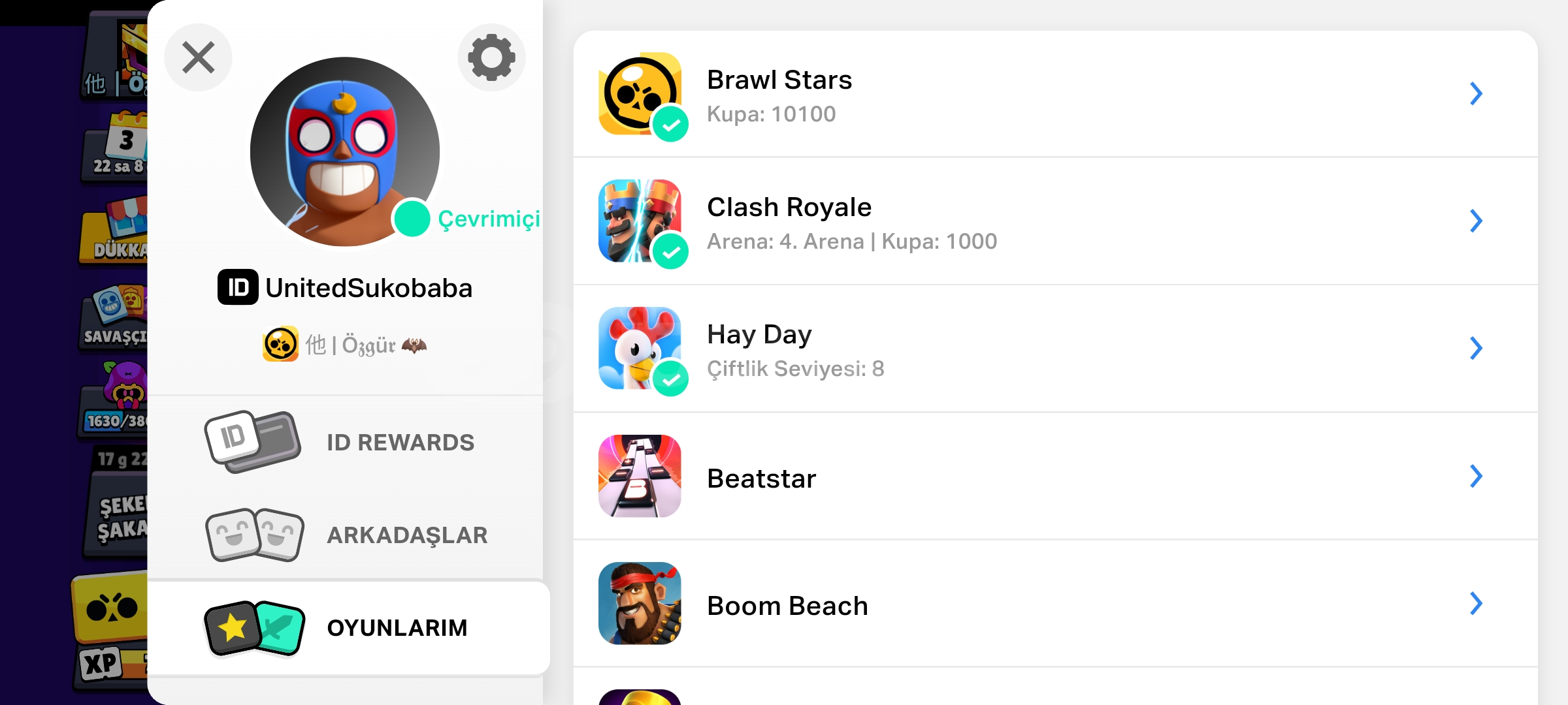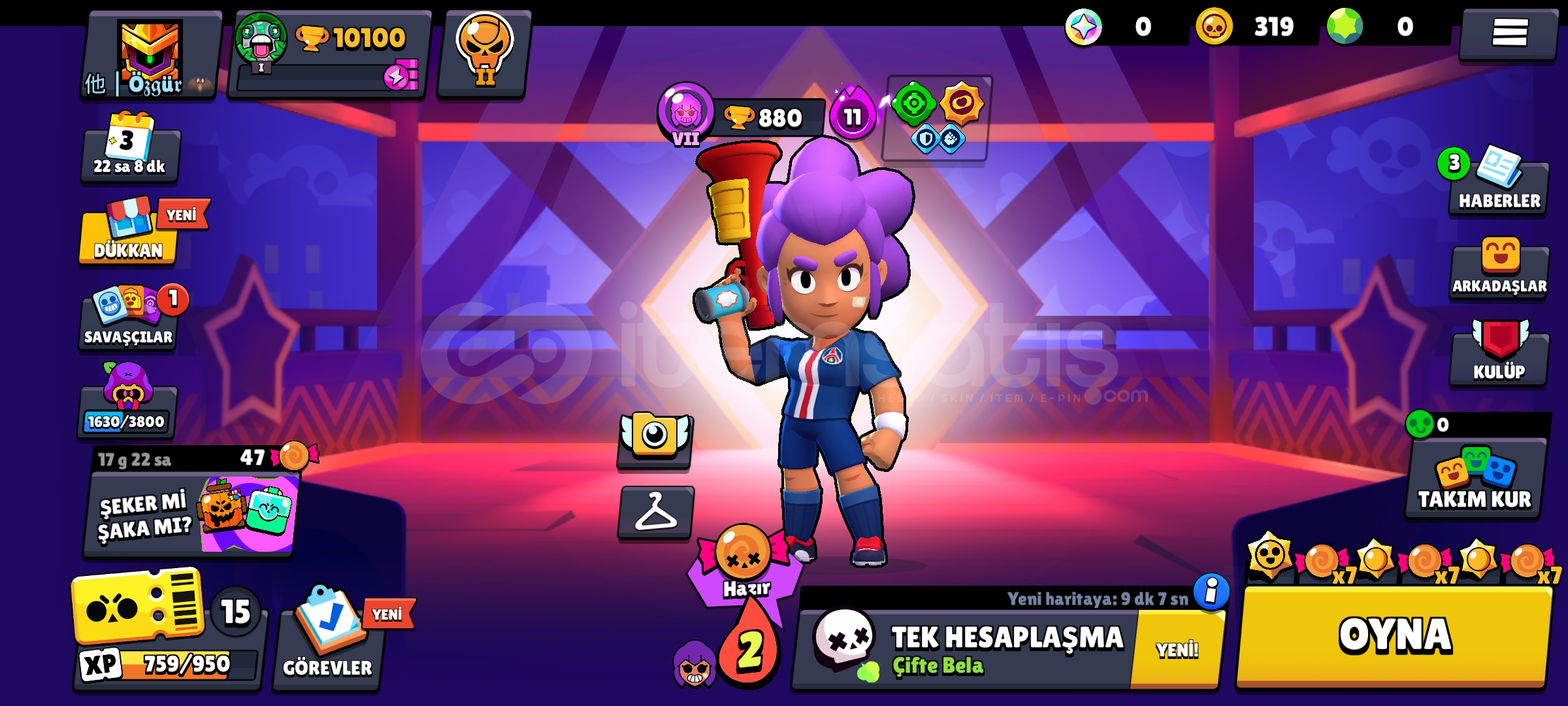 3 oyunClash royale 1k kupaHayday 8 lvlBraw Stars 10100 kupa53 karakter 7 efsanevi 7 gizemli20 destansı10 süper ender 8 ender 1 ilk savaşcı 8 tane 11 lvl6 tane hiper şarj82 kostüm36 ender40 süper ender 14 destansı 1 efsanevi 1 hipersarjPSG shelly Haydut crowİblis coletteŞeytan emzZebani boTelefon numarası bağlı değil E posta şifre verilecek