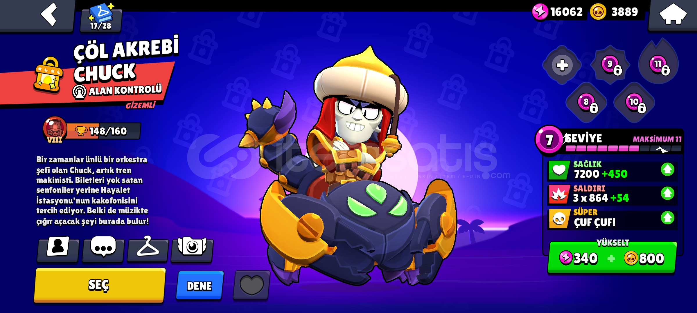 Hesapta 102 kostüm vardır bunlardan 52 tanesi ENDER 29 tanesi SÜPER ENDER 22 tanesi DESTANSI 3 tanesi GİZEMLİ 3 tanesi EFSANEVİve diğer 3 tanesi ise HİPERLİ KOSTÜMDÜRHesap 13K'dır ve en iyi başlangıç hesaplarından bir tanesidir.Teslimat anında otomatik bir şekilde güvenle mail ile teslim edilir