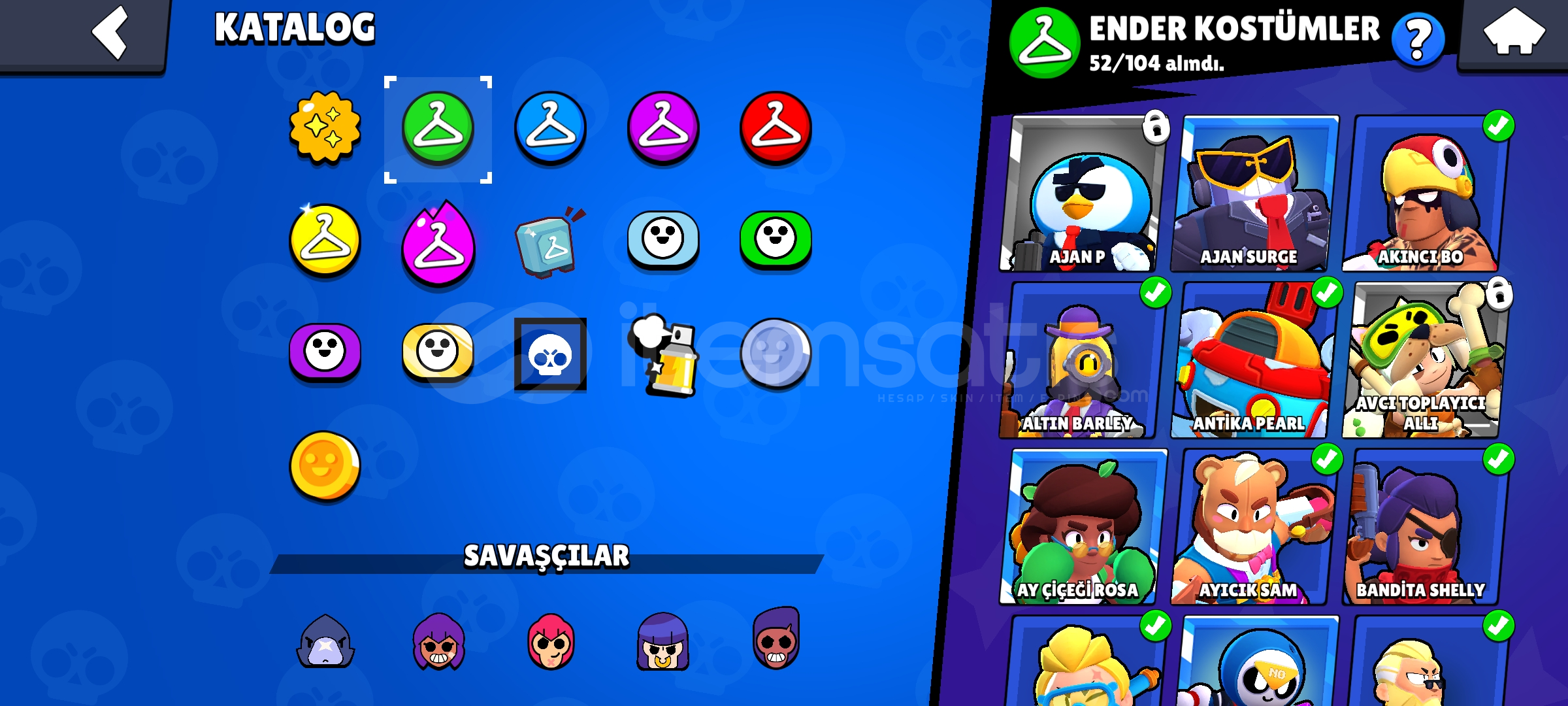 Hesapta 102 kostüm vardır bunlardan 52 tanesi ENDER 29 tanesi SÜPER ENDER 22 tanesi DESTANSI 3 tanesi GİZEMLİ 3 tanesi EFSANEVİ