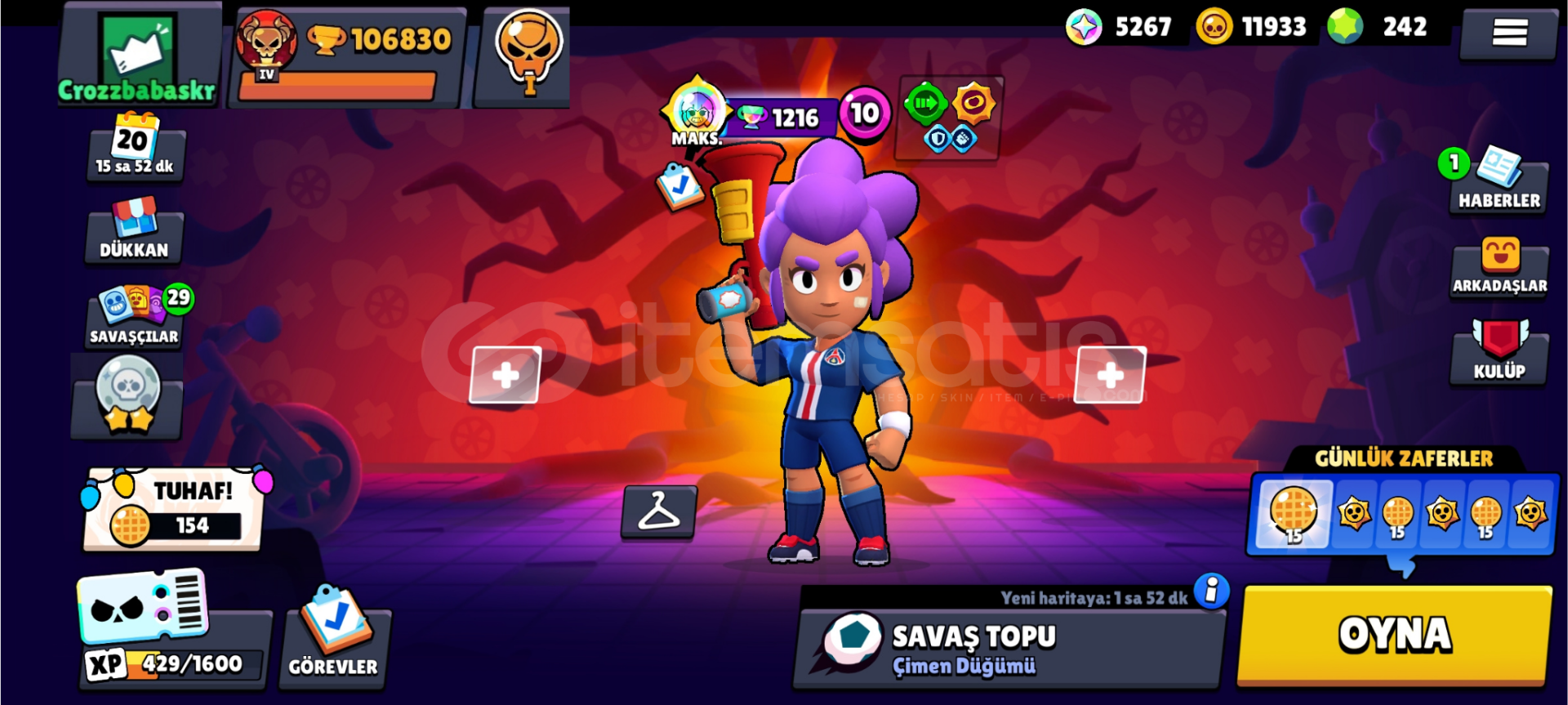 Brawl pass açıktır 97 karekterdir tek 1k olmayan karekter gigi dir. hesap salindigi için aşama kasilmiyor eskiden efso 3. olmuştu Şuan 93k düştü 1 prestij var içinde hyra eklidir ve Sniper eklidir