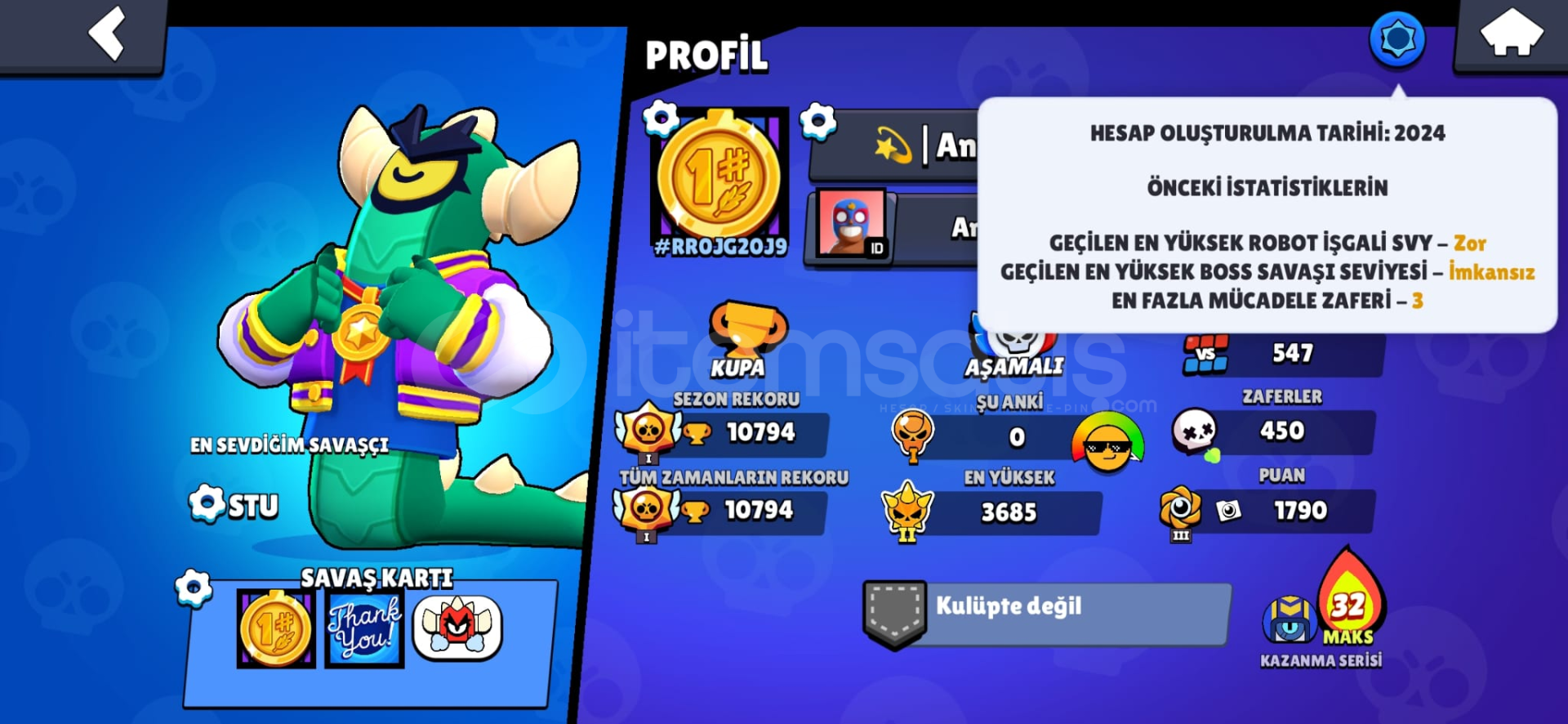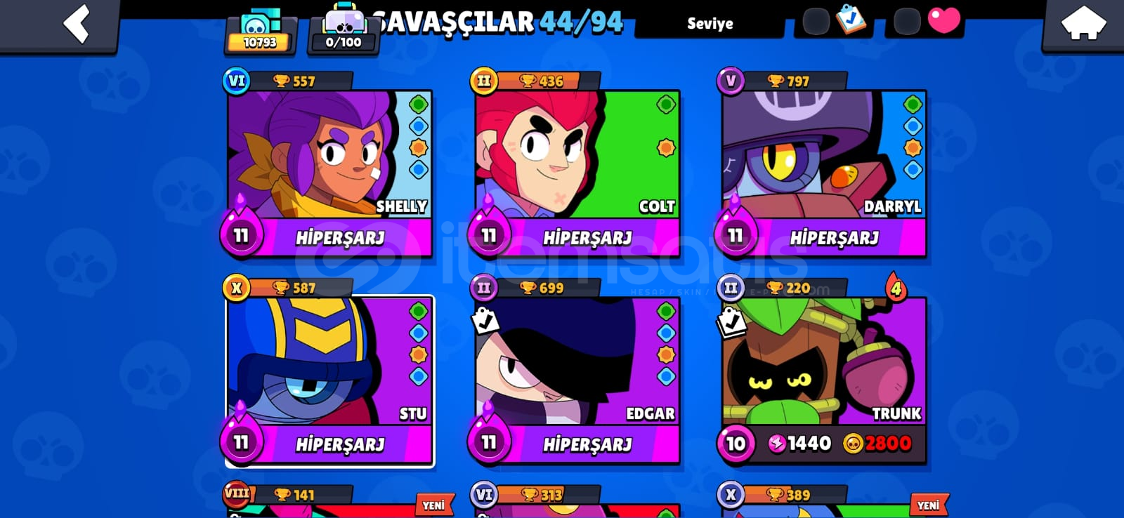 MERHABA 2024 HESAP UCUZA FAZLA KARAKTER VE SKİNE SAHİP BİR HESAP27 ender 23 süper ender 9 destansı 4 gizemli 1 efsanevi (64 kostüm)isim değişecek elmasa sahip 44 karakter5 full level ve hiperşarjlı (5 açılmamış hiper)10.800 kupa