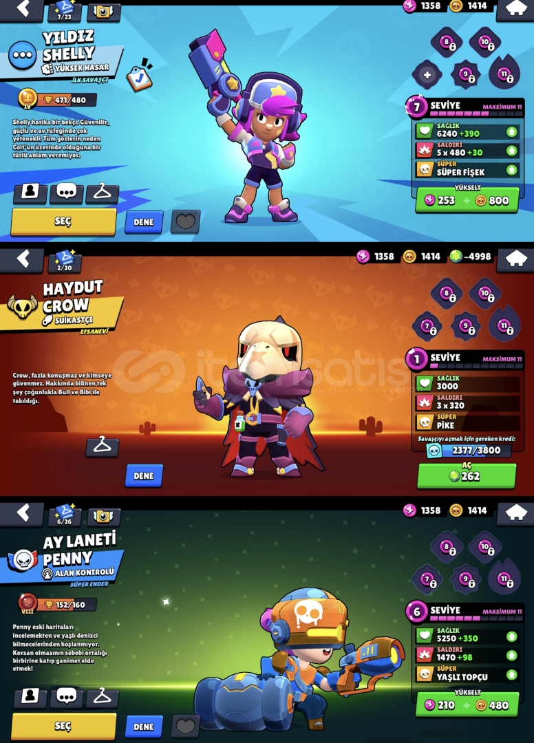 HESAP TAMAMEN ŞAHSIMA AİTTİR SUPERCELL İD MAİL DEĞİŞİMİ YAPILARAK TESLİM EDİLECEKTİR🌀HESAP FOTOĞRAFTA GÖZÜKTÜĞÜ GİBİDİR 1500 KREDİ SONRA İSTENİLEN EFSANEVİ KARAKTERİ AÇABİLECEKSİNİZ 2 TANE BRAWL PAS PLUSS FULLENMİŞTİR HESAPTA -4998 TAŞ VARDIR O YÜZDEN FİYATI UYGUNDUR ⭐HERHANGİ BİR SORUND...