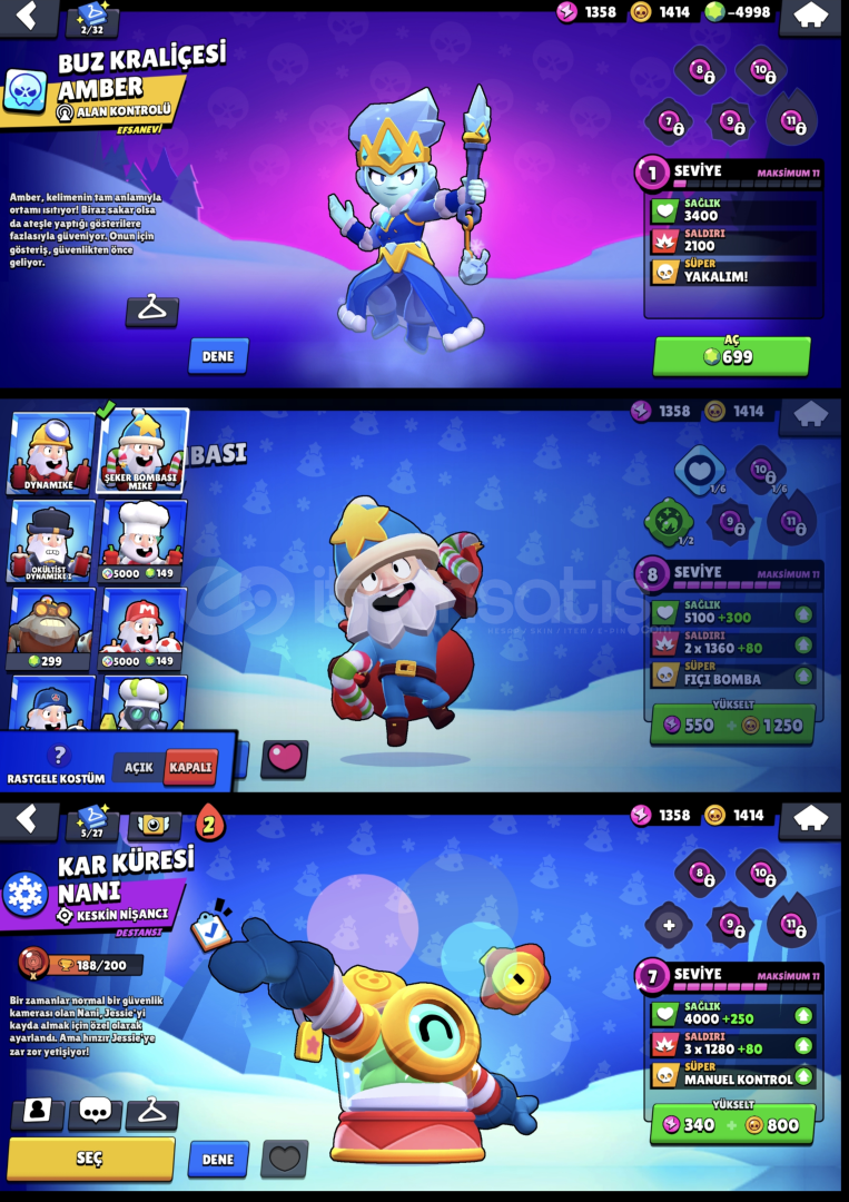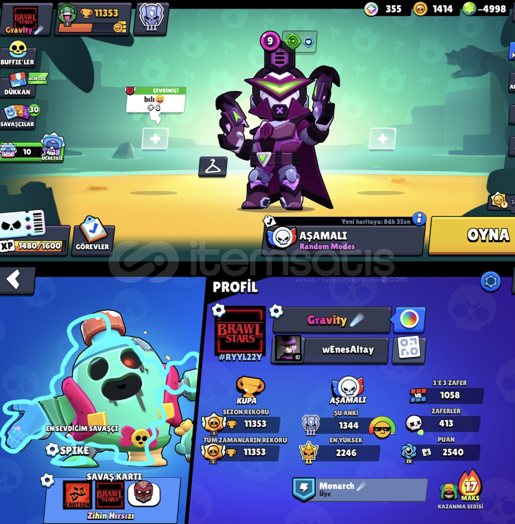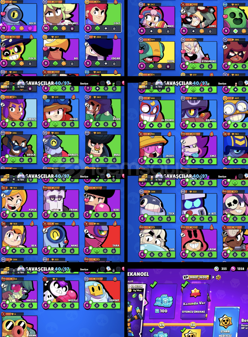 🌀HESAP FOTOĞRAFTA GÖZÜKTÜĞÜ GİBİDİR 1500 KREDİ SONRA İSTENİLEN EFSANEVİ KARAKTERİ AÇABİLECEKSİNİZ 2 TANE BRAWL PAS PLUSS FULLENMİŞTİR HESAPTA -4998 TAŞ VARDIR O YÜZDEN FİYATI UYGUNDUR