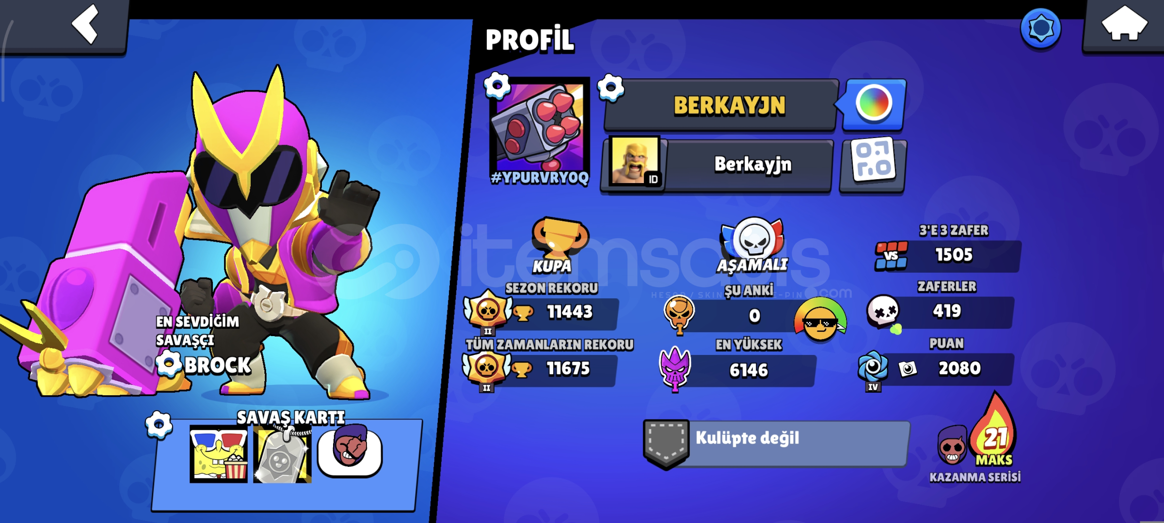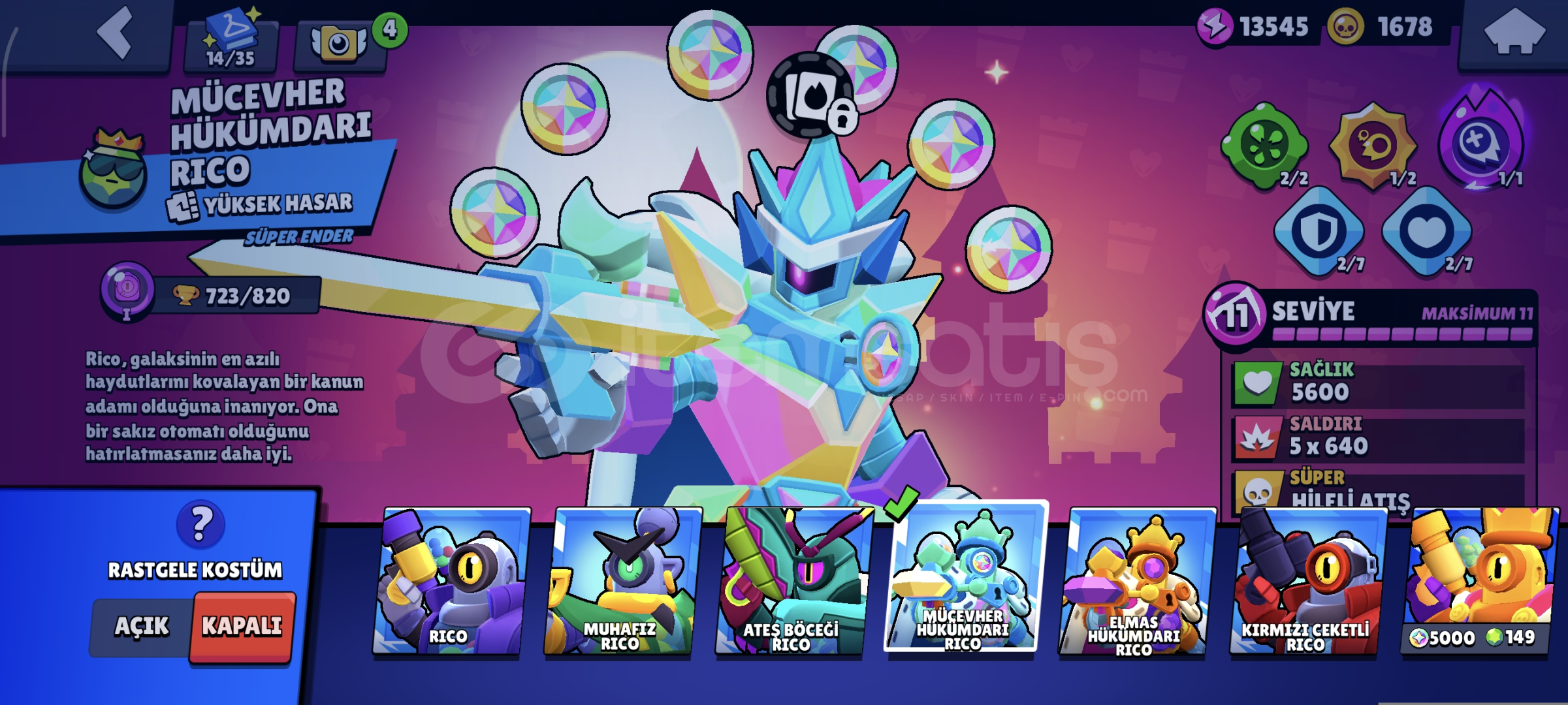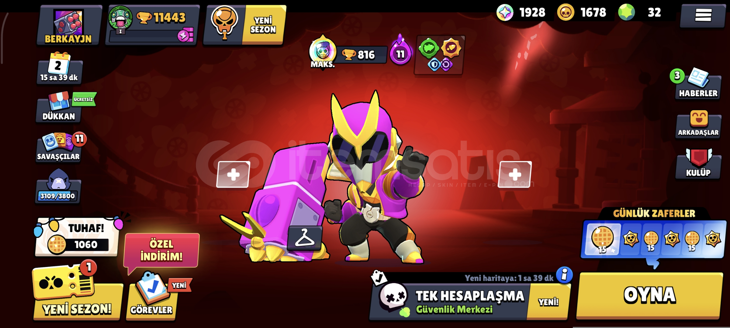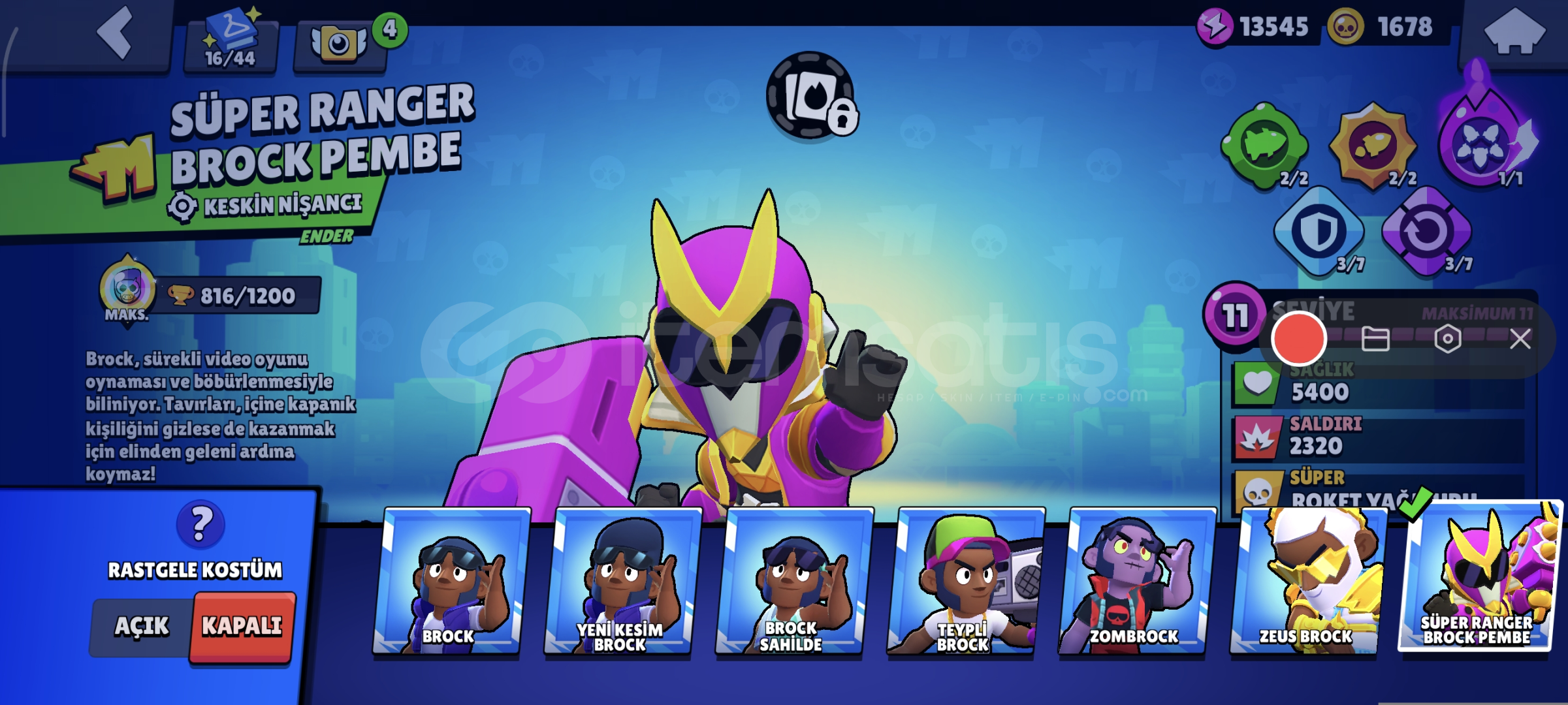 Hesabımızda 11443 kupa bulunuyor 67 kostüm bulunuyor 4 Hiperşarjlı karakterler bulunuyor temiz almayan pişman.