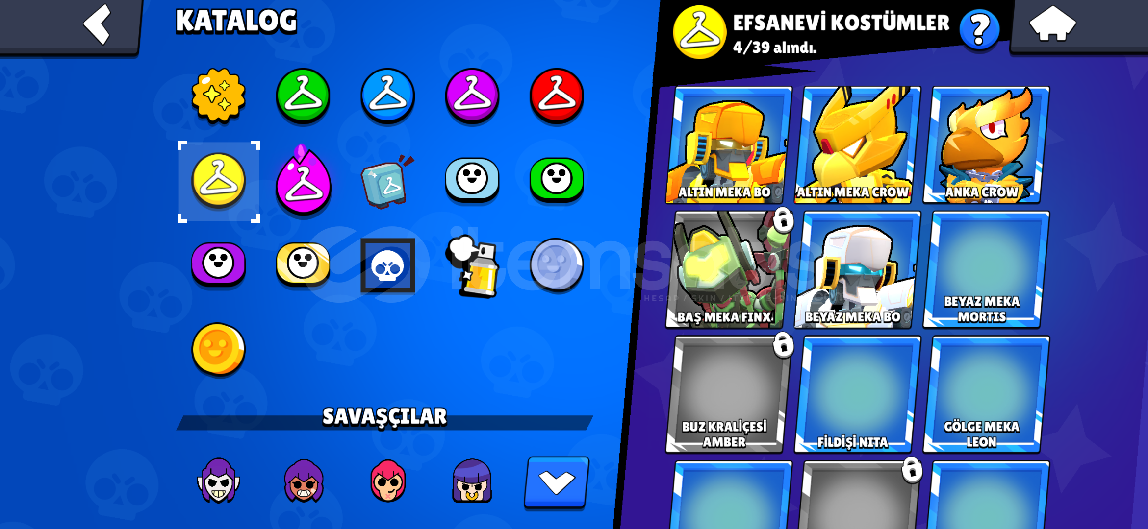 6 EFSANEVİ KARAKTER42 ENDER KOSTÜM25 SÜPER ENDER KOSTÜM27 DESTANSI KOSTÜM5 GİZEMLİ KOSTÜM4 EFSANEVİ KOST&...