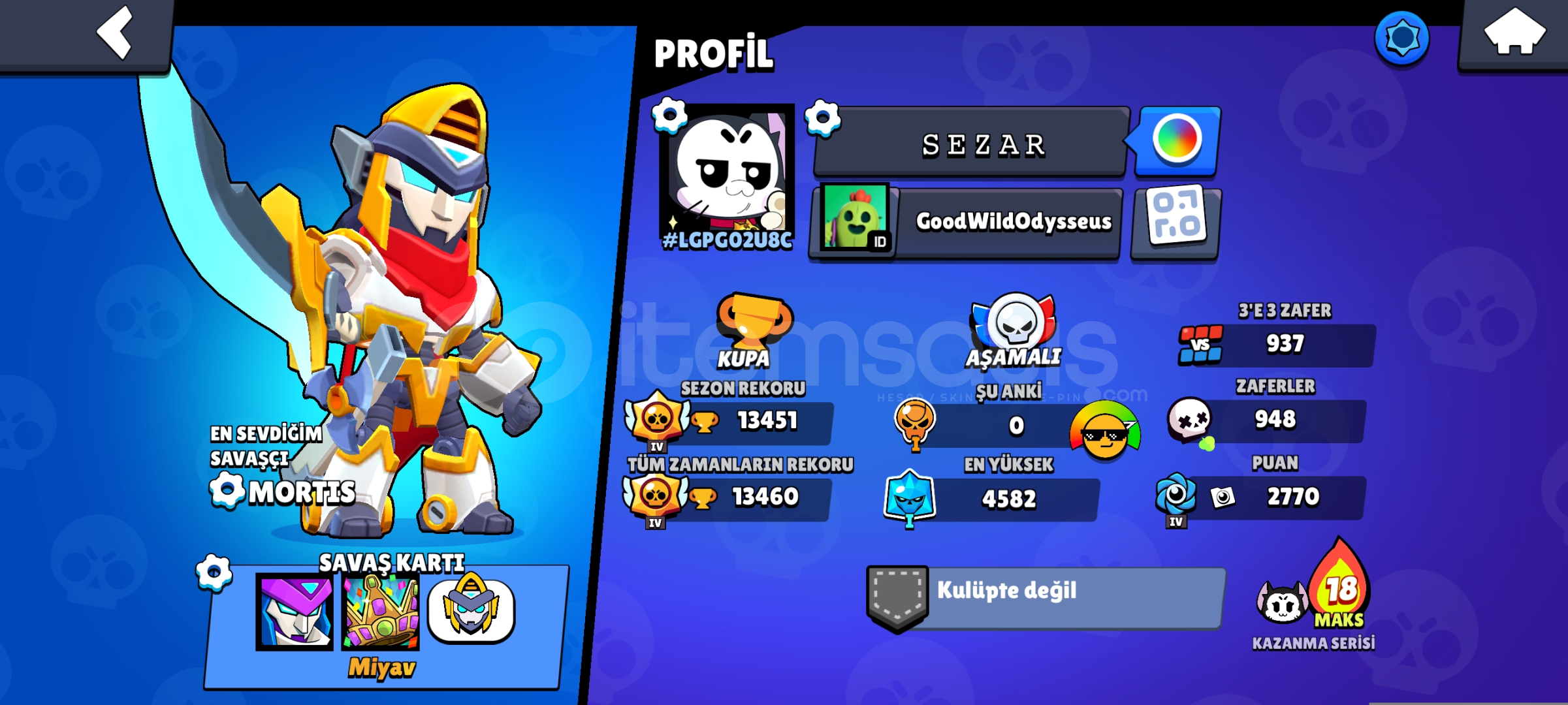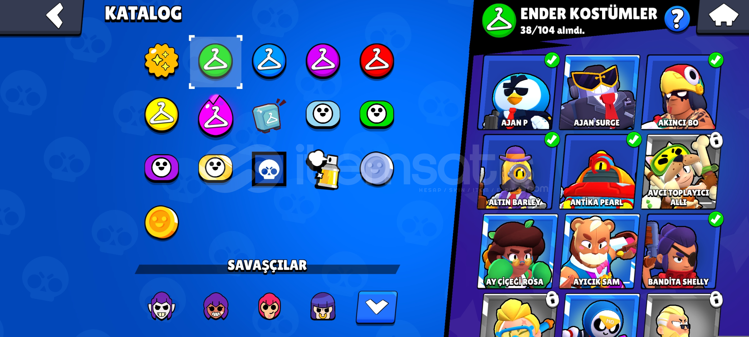 Hesap göründüğü gibidir e posta değişimi açıktır alan kişinin e postası geçirilecektir kupası düşük ama içi dolu bir hesaptır;38 Ender Skin30 Süper Ender Skin16 Destansı Skin2 Gizemli Skin3 Efsanevi Skin1 Hiperşarj Skin'i vardır alıcısına şimdiden hayırlı olsun. Alıcı ciddi ise pazarlık payı vardır.