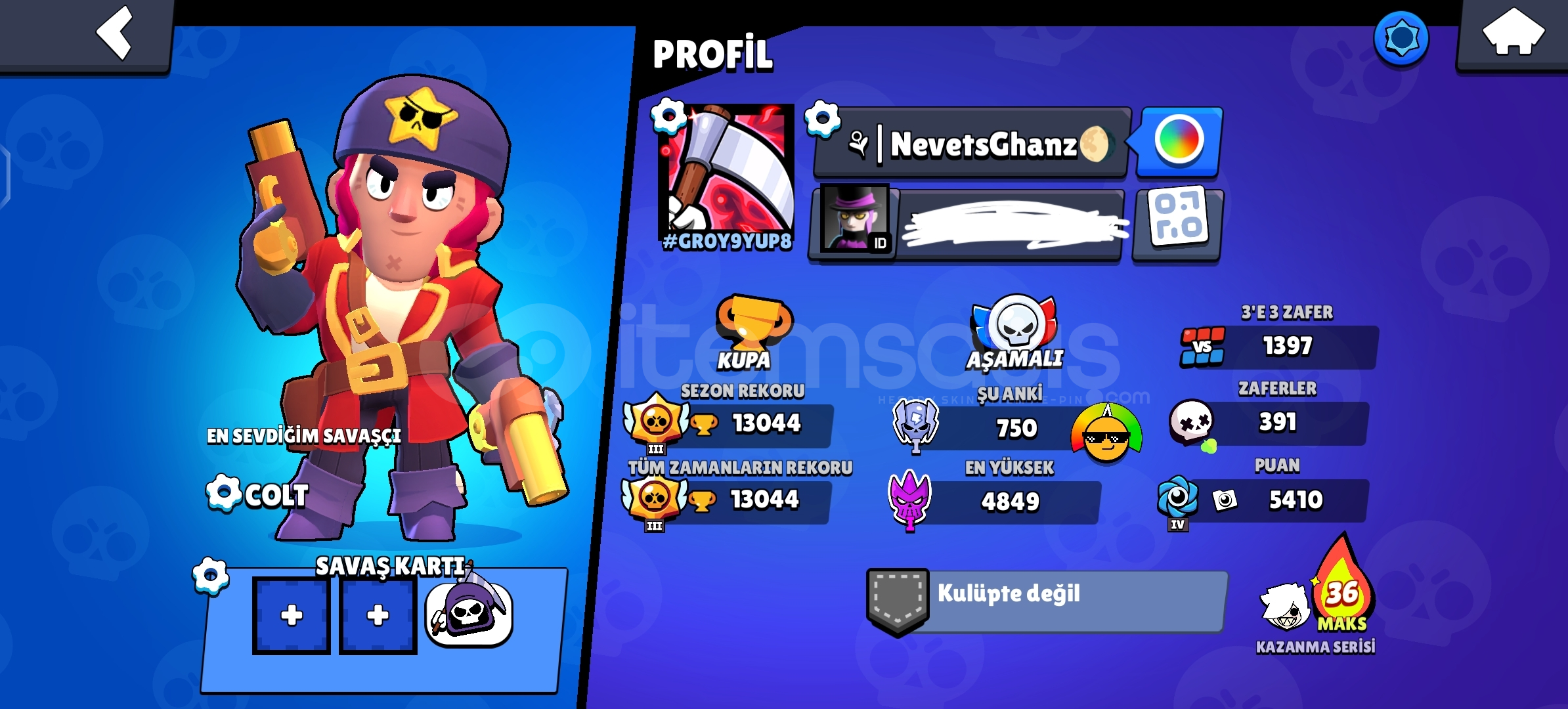 Uzun yıllardır oynanan, 2019 yılında açılmış Brawl Stars hesabımı satıyorum. Hesap, koleksiyonluk içerikler ve oyun içi avantajlar açısından oldukça zengindir.Hesap Özellikleri:🗓️ 2019’da açıldı (eski ve köklü bir hesap)🎭 25+ özel/nadir skin mevcut🎟️ 2 sezon Brawl Pass açıldı — sezonlara özel &o...