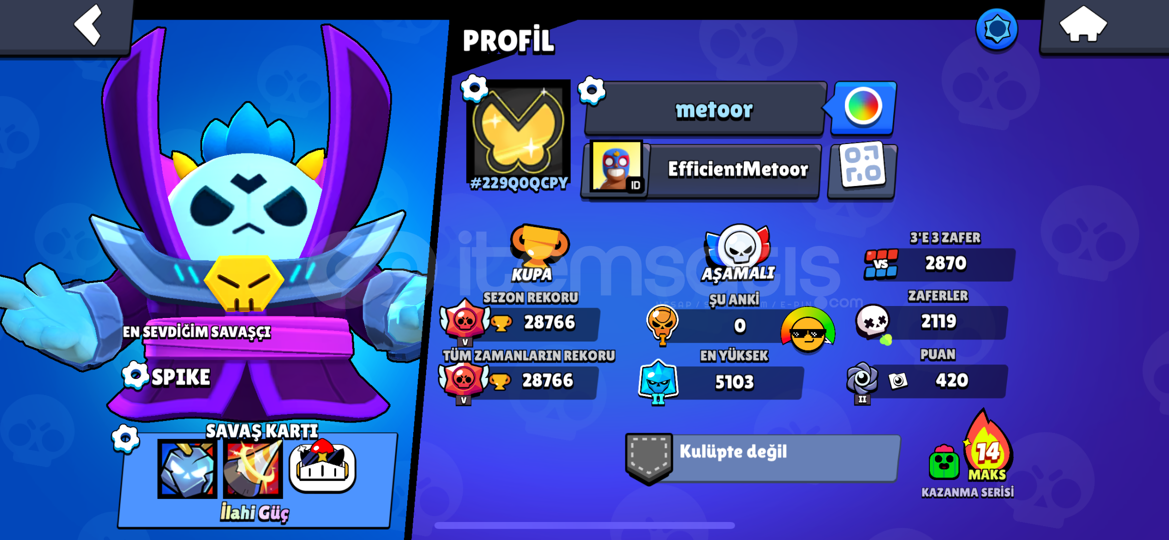 ‼️Sınırlı Süreli %50 İndirim ‼️Hesap 28.766 kupadırToplam 74 karakter vardırBUZZ SEZONUNUN BP PLUSU AÇILMIŞTIR2 ADET ÜNVAN15 MAX / 3 ADET 10 LEVEL/ 4 ADET 9 LEVEL KARAKTER VE 6 ADET HİPERŞARJ BULUNMAKTADIRSKİN SAYILARI :3 HİPERŞARJ SKİN1 EFSANEVİ SKİN3 GİZEMLİ SKİN25 DESTANSI SKİN40 SÜPER ENDER SKİN59 ENDER SKİ...