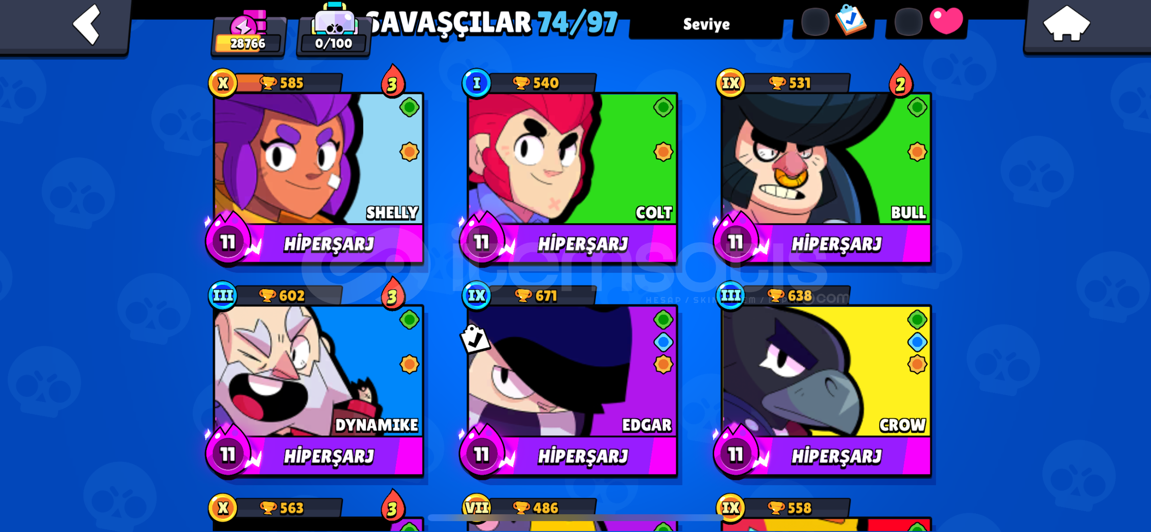 ☄️ +142 SKİN ⭐️29K KUPA⭐️ 72 KARAKTER KASLMALIK