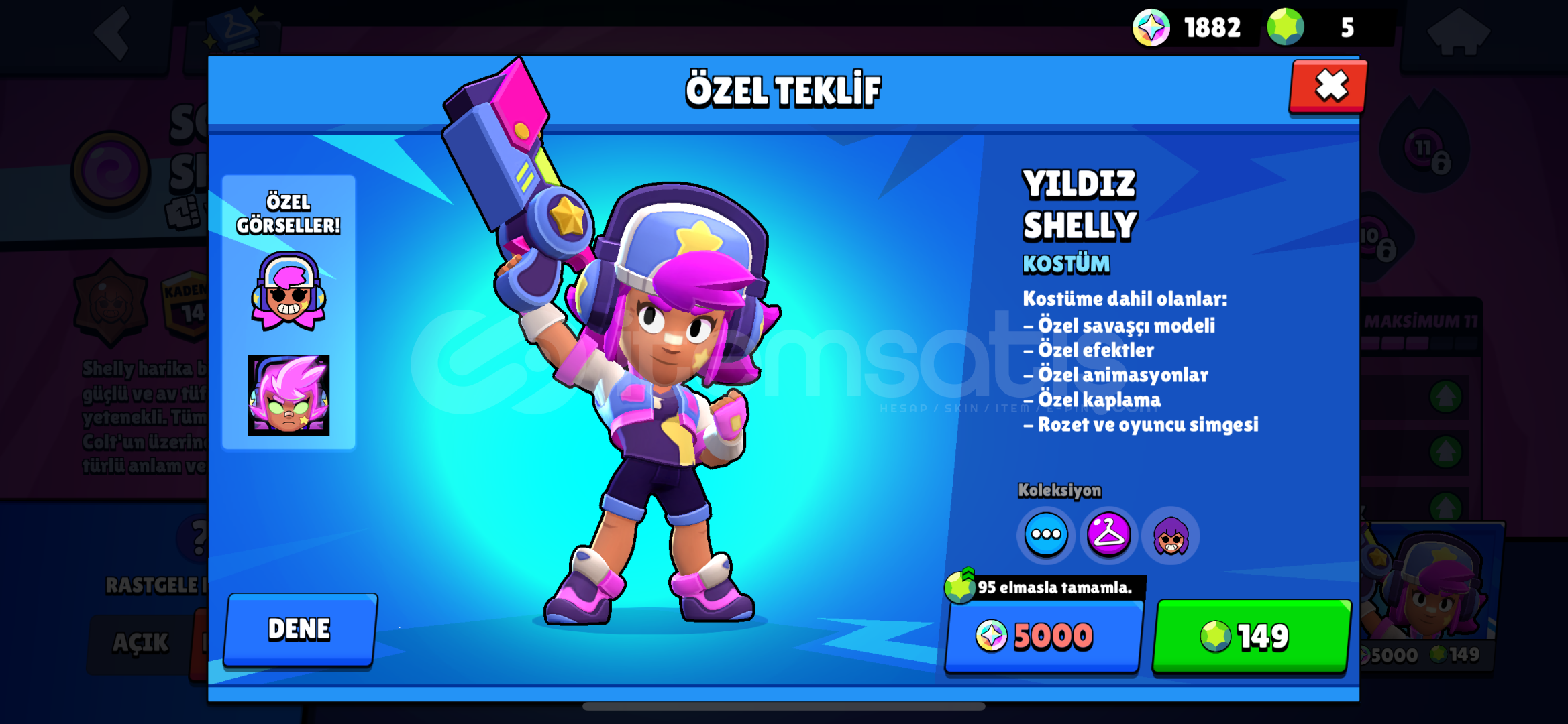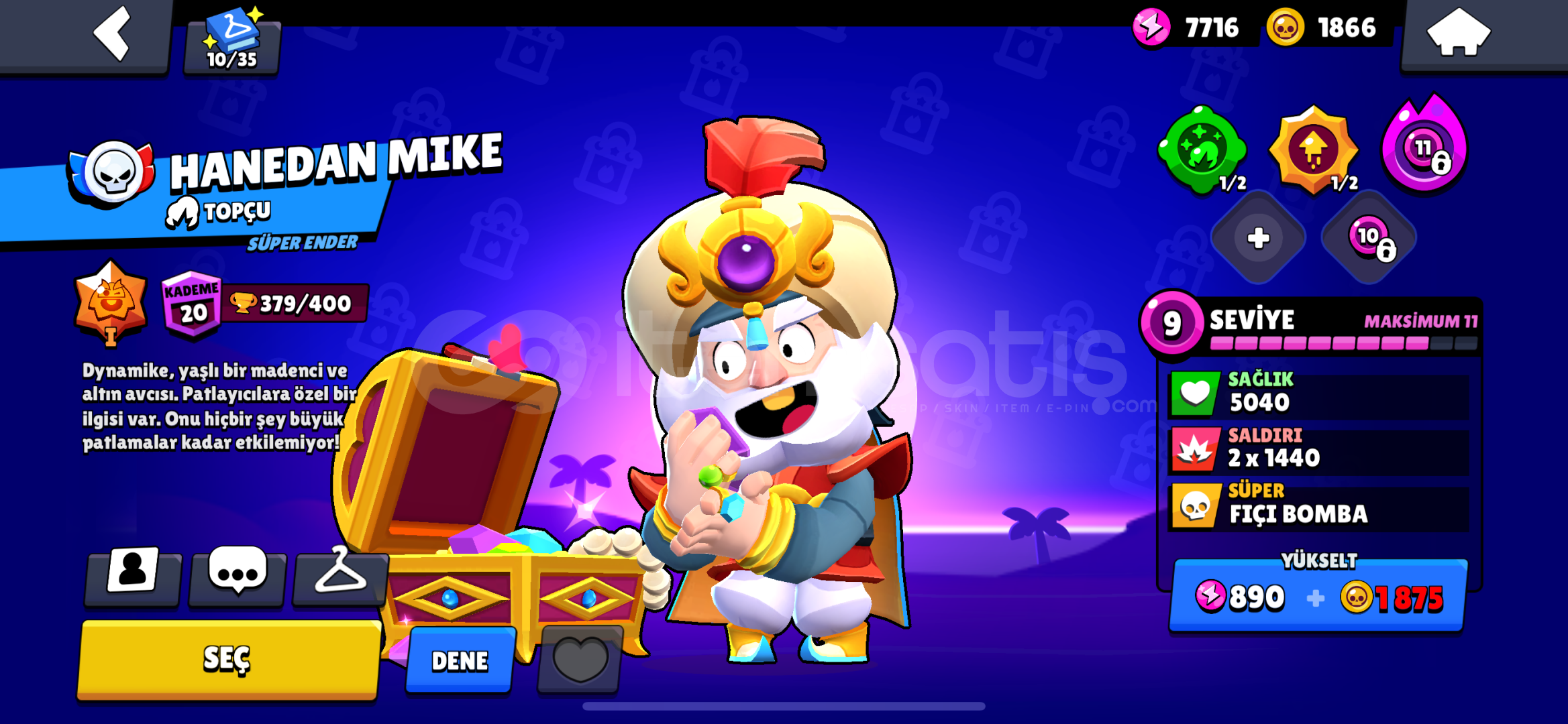 Hesapta gördüğünüz skinler dışındada birbirinden farklı skinler var dopdolu mükemmel bir hesap alan kişi çok şanslı clash royale hesabı anlatmaya gerek yok F/P mğkemmel bi hesap hepinize iyi gğnler dilerim