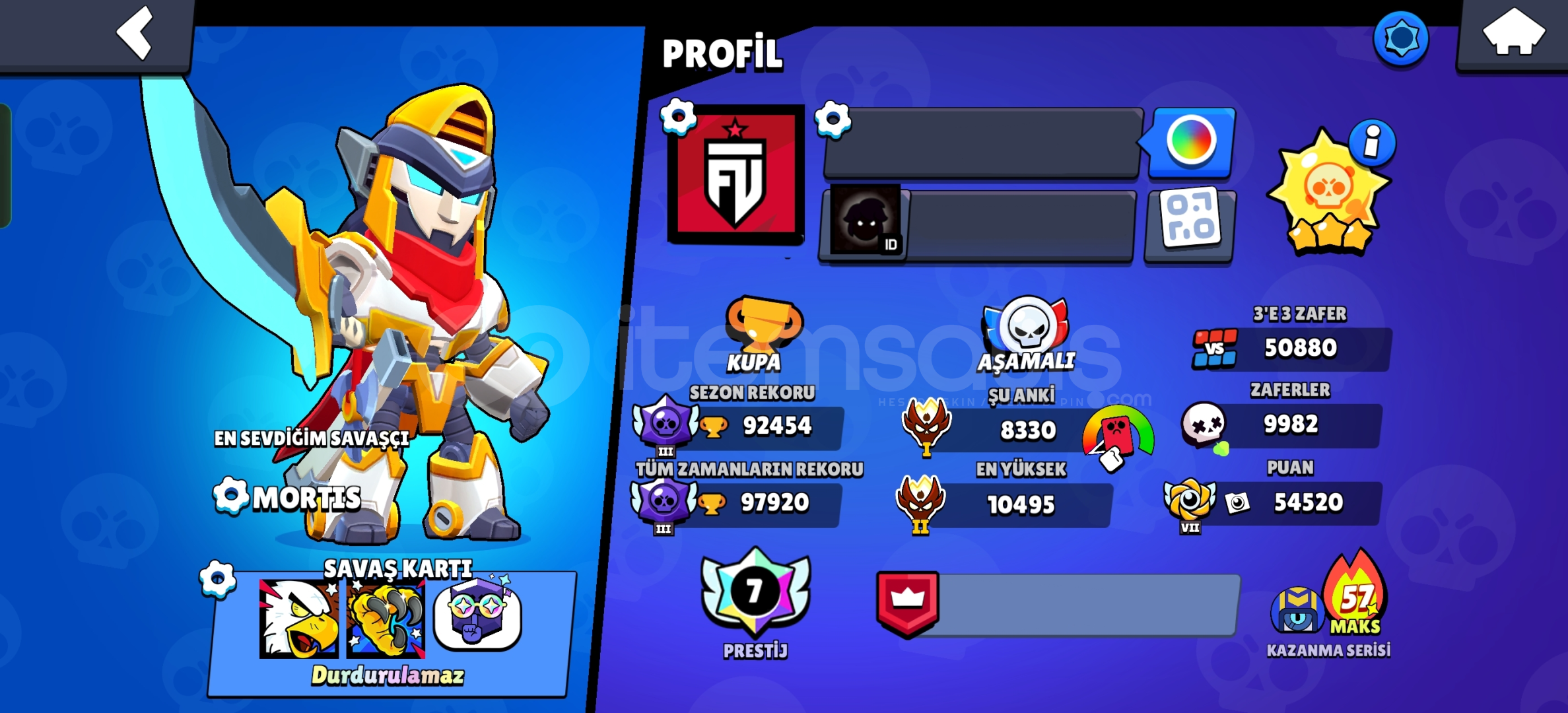 8 tane 2025 master6 tane 2024 master 7 tane prestij 5 tane 2000 1 tane 35 50880 3v3 zafer 4150 çift zater5832 tek zafer 6 hiperşarj 18 efsanevi7 gizemli 128 destansı107 süper ender 84 ender kostümVardır.Hesabın telefon koruması yoktur.Aldığınız zaman hesabın gmail ve şifresi Otomatik Olarak size gelecektir.Gmailin kurtarma numarası veya e-postası yoktur.Teslimden sonra hesaptan çıkış videosu a...