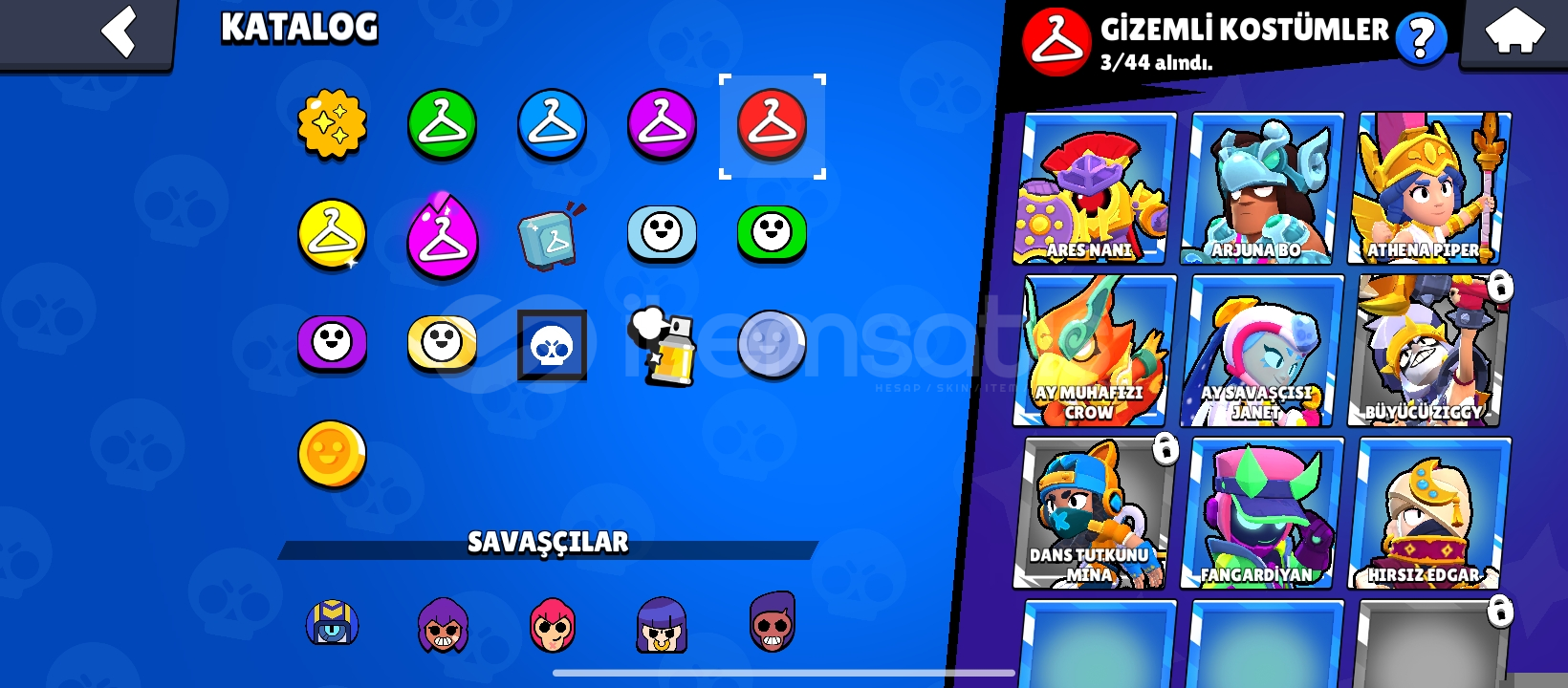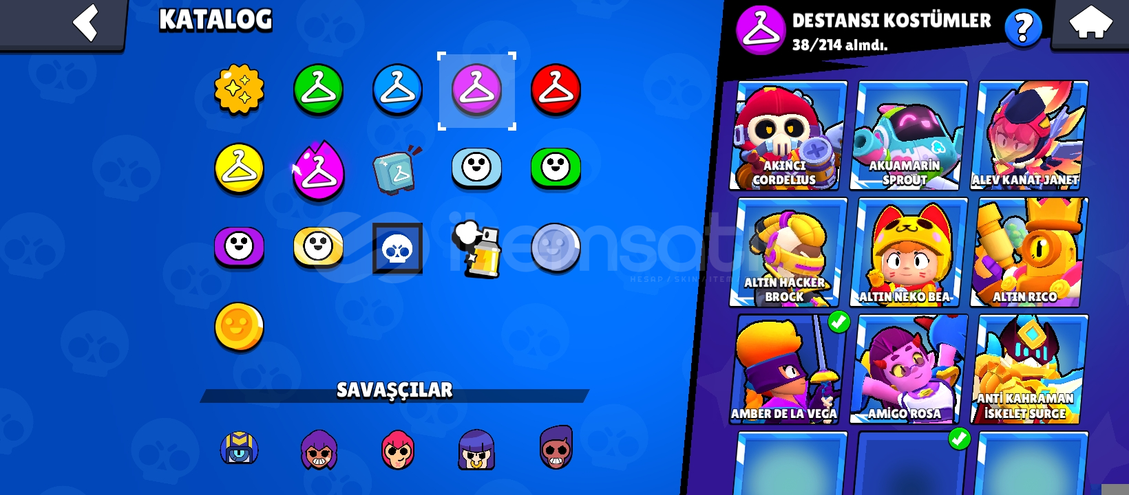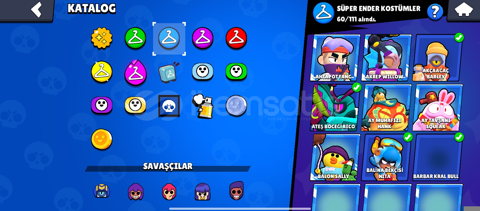 Hesapta 159 adet kostüm bulunmaktadır ve şuan 46200 kupa olsa bile 50 bin kupa yaptıktan sonra hesabı vereceğim!(Şuanki fiyat şimdi almak isteyenler için istediğiniz kupayı söyleyin ona göre fiyat çözeceğim.)