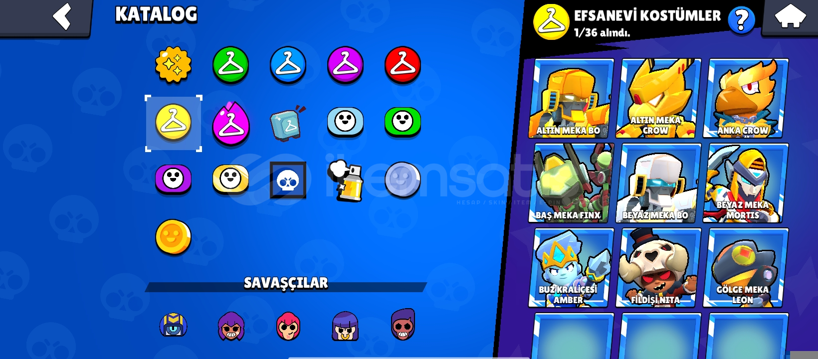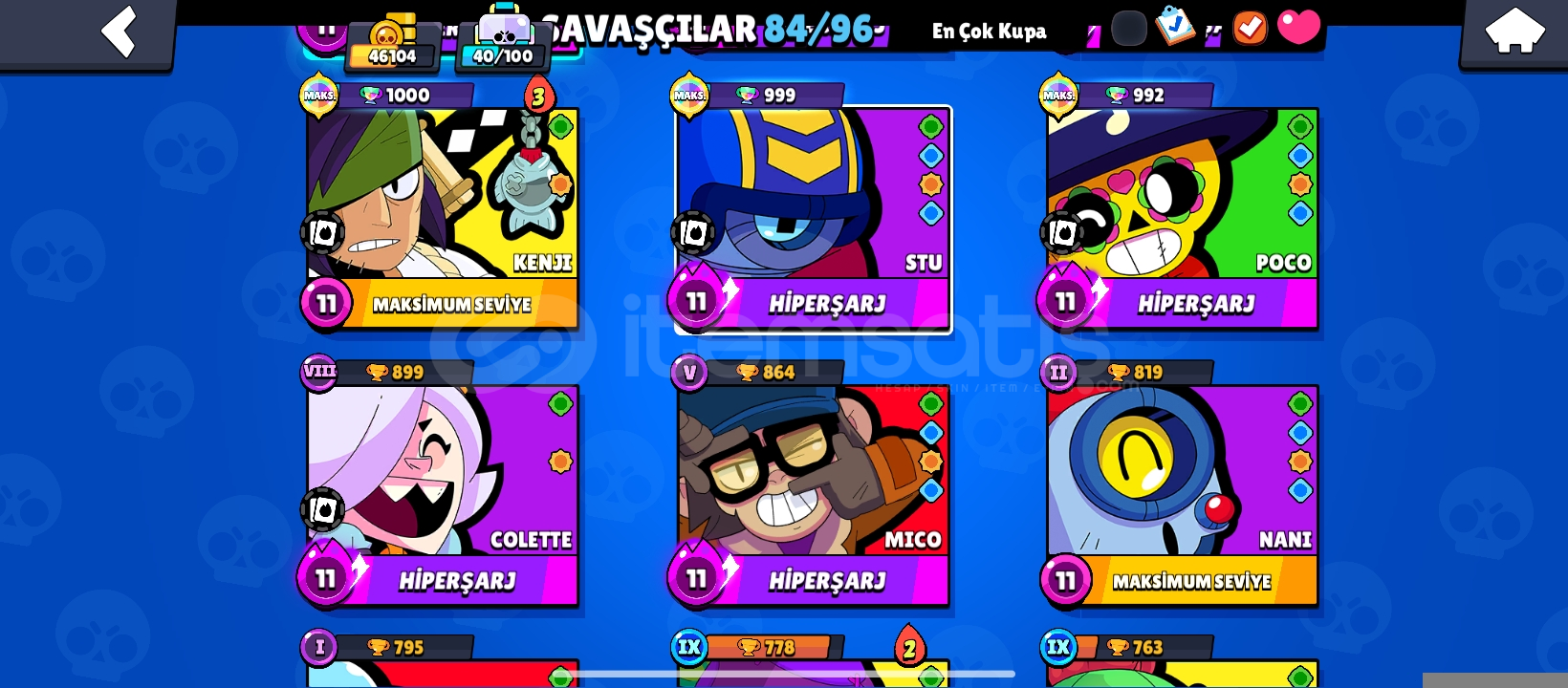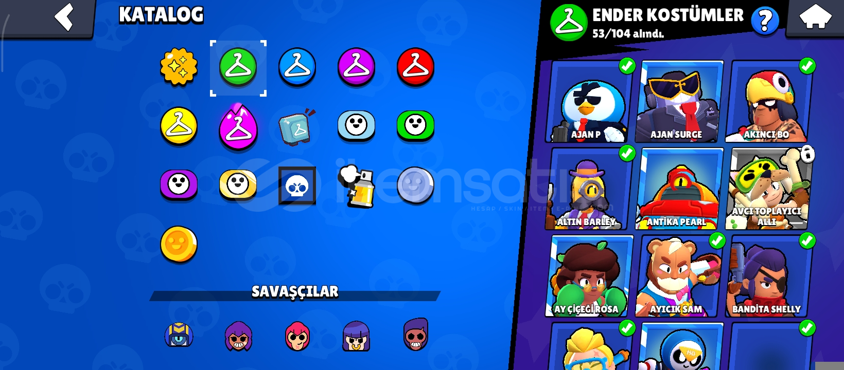 Hesapta 159 adet kostüm bulunmaktadır ve şuan 46200 kupa olsa bile 50 bin kupa yaptıktan sonra hesabı vereceğim!(Şuanki fiyat şimdi almak isteyenler için istediğiniz kupayı söyleyin ona göre fiyat çözeceğim.)