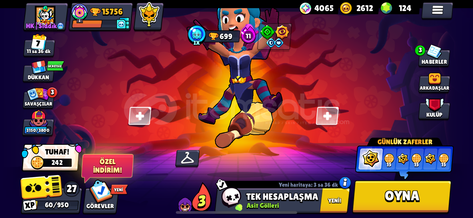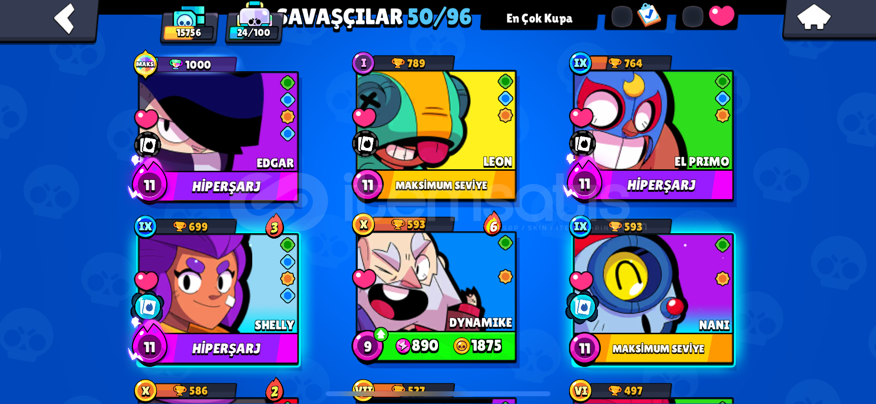 Hesap 15.756 kupadır 124 taş 50 karakter vardır 30 ender , 28 süper ender , 18 destansı , 4 gizemli , 1 hipersarj kostüm vardır + bb13 Clans of Clans vardır çok uygun fiyata vericem 172 tl ye alabilirsiniz