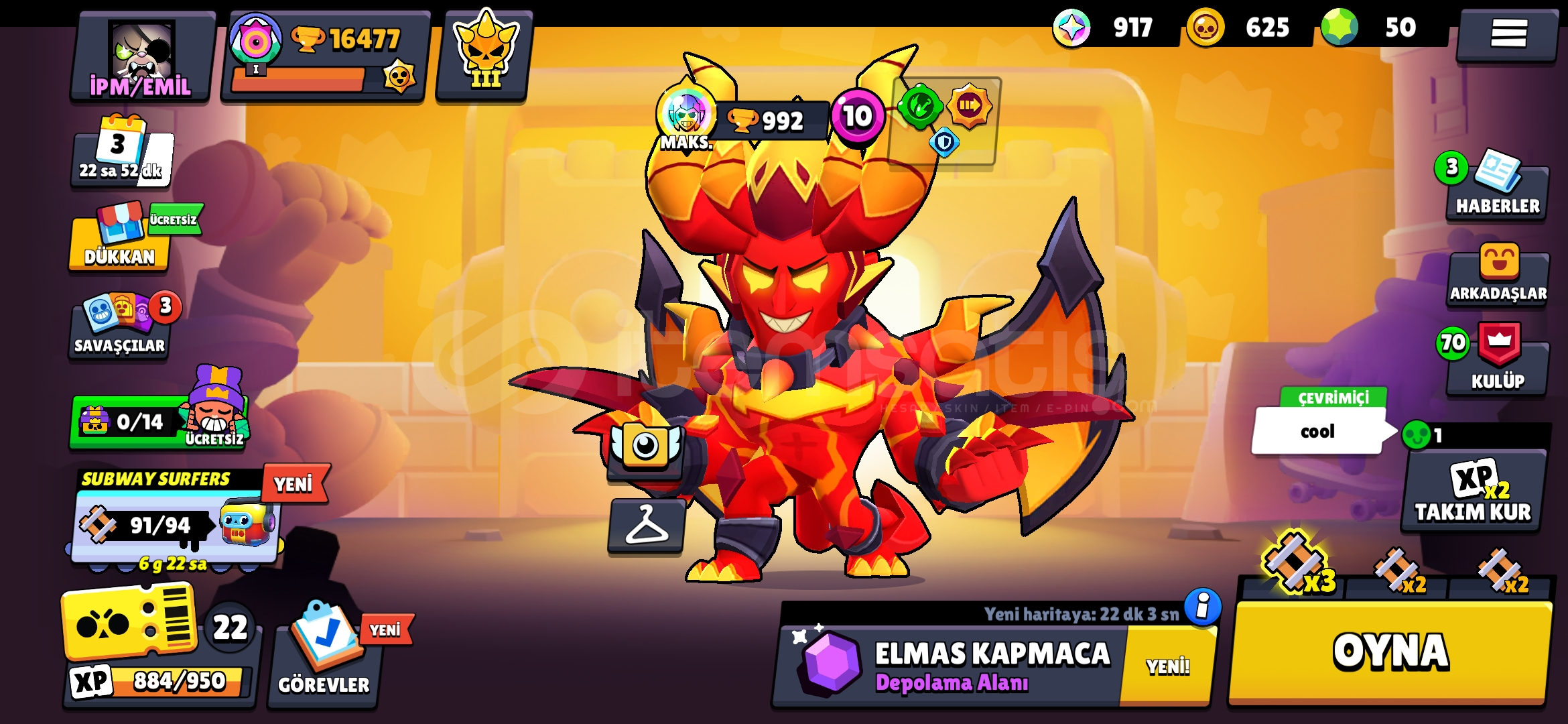 16 K hesap başlağinc hesab olarak cok uygun Şeytan mortis 2 kostümu de var Fotoğrada gorsendiği gibi ne sornunuz olursa ozelden yaza bilrisniz