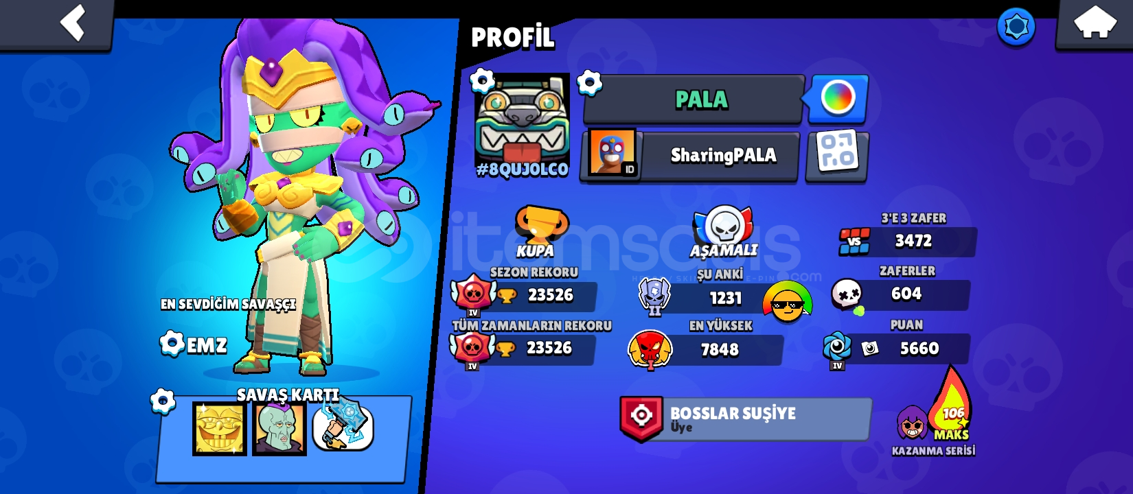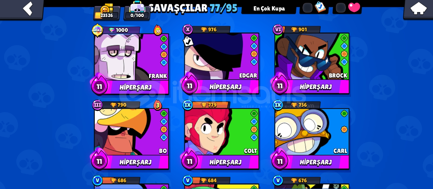 160kostüm25 adet 11 seviye karakter18adet açık hiperşarj77 karakter 23k kupa22000 mücevher dilediğiniz kostümleri alabilirsinizdeğerli ve nadir kostümler vardırbaşlangıç için fırsat hesabı kaçırma şimdiden alıcısına hayırlı olsunmail verilicektir herhangi bir bağ yoktur