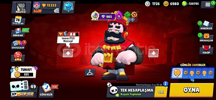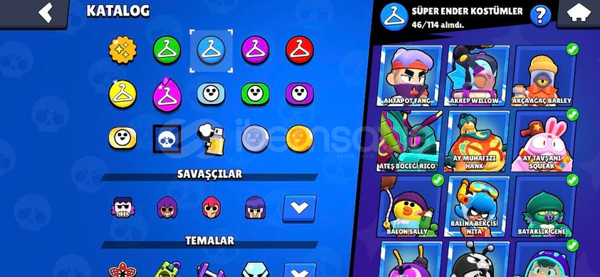Brawl Stars Full Hesap Satılık! Hesap Özellikleri:Süleyman Serin videosunda çıkan özel hesaptır.Tüm karakterler açık!Şu anda Brawl Pass aktif.34 Efsanevi kostüm, 32 Gizemli kostüm mevcut.2 Kral Frank kostümü bulunuyor.20 adet altın kostüm var.22.000 altın mevcut.Hesapta çok iyi oyuncular arkadaş olarak ekli. Hesap tamamen dolu, aktif ve özel bir hesaptır. Az da olsa pazarl...