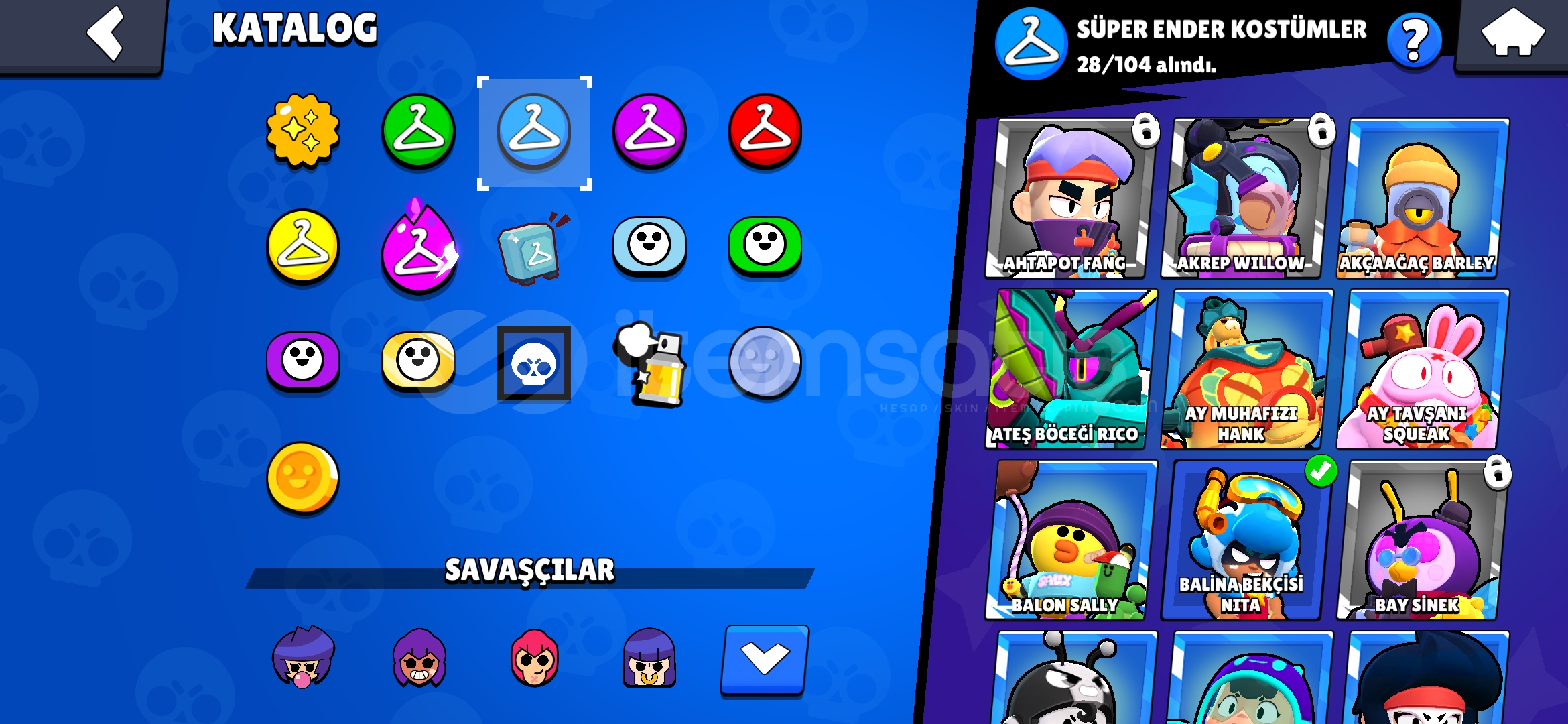 16K KUPA THOR BİBİLİ 97 KOSTÜMLÜ 57 KARAKTERLİ EFSANE HESAP45 ENDER KOSTÜM 28 SÜPER ENDER KOSTÜM 20 DESTANSI KOSTÜM 3 EFSANEVİ KOSTÜM 1 HİPERŞARJ KOSTÜM