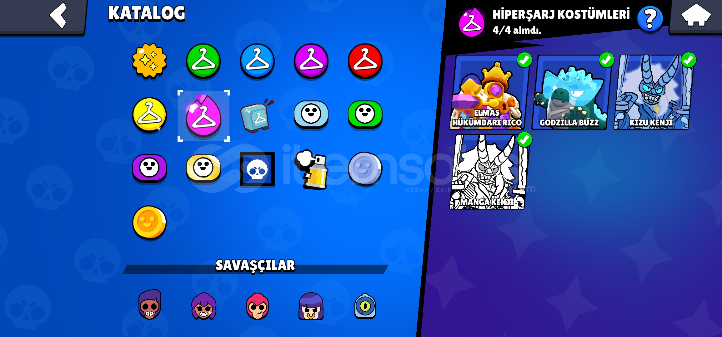 6 Tane hiper şarjlı5 Tane max savasciNick değişmek isteyen olursa diye 150 taş bıraktımNumara bağı var silersiniz zatenGmail değişip vereceğim hesap açarsa iyi olur alacak arkadaşBayağı bir 0 kupa savasci var fotoğrafta görünüyor