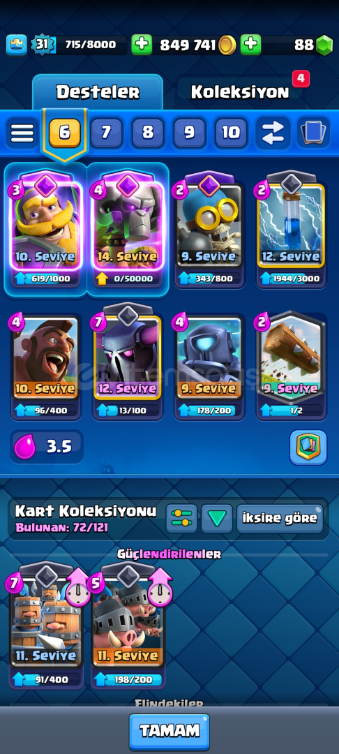Hesapta olan kostümler53 ender49 Süper ender52 destansı2 gizemli4 efsanevi kostüm vardır6 k muchever vardırCR hesabında 3 tane Evrim Koçbasi,şövalye,bombacı evrimi var + toksik emojiler var