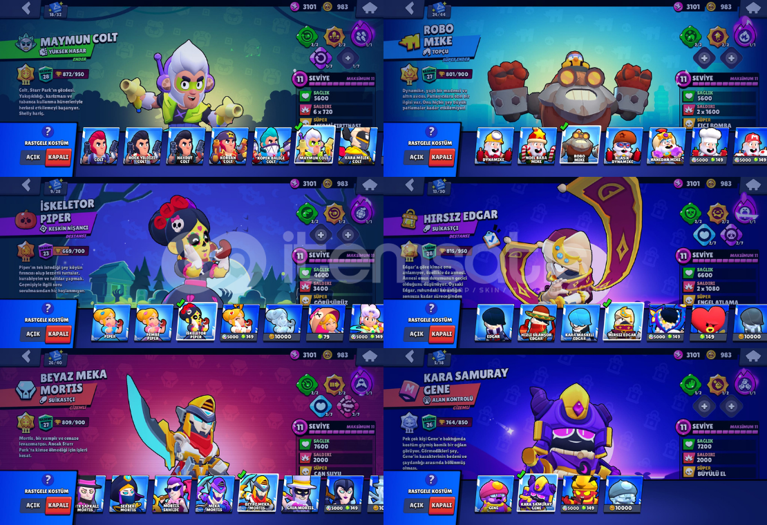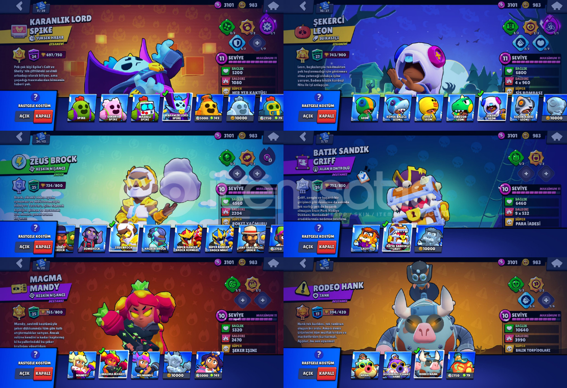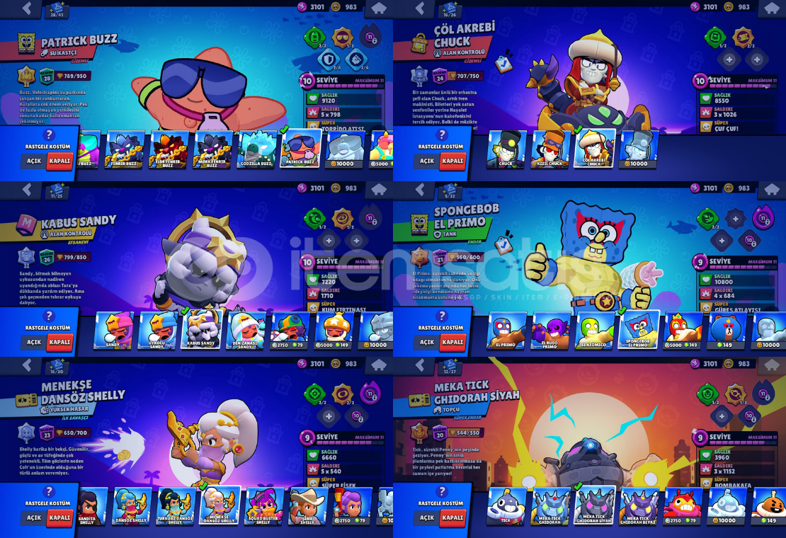 Hesap kupa kasmaya oldukça müsaittir 86 karakter bulunmaktadır31 karakterde hiperlarj vardır.Efsane karakterlerin hepsi açıktır.+170’den fazla skin.Ücretsiz isim değiştirme hakkı.47k kupaDünya şöhreti 3. seviyeAçık olmayan karakterlerShadeTrunkJujuLumiFinxJae-YongAllıMınaKazeZıggyEkstra oyunlarClash of Clans Belediye binası 9Clash Royale Arena 17 Kupa 6238Mail ile birlikte devredilecek...