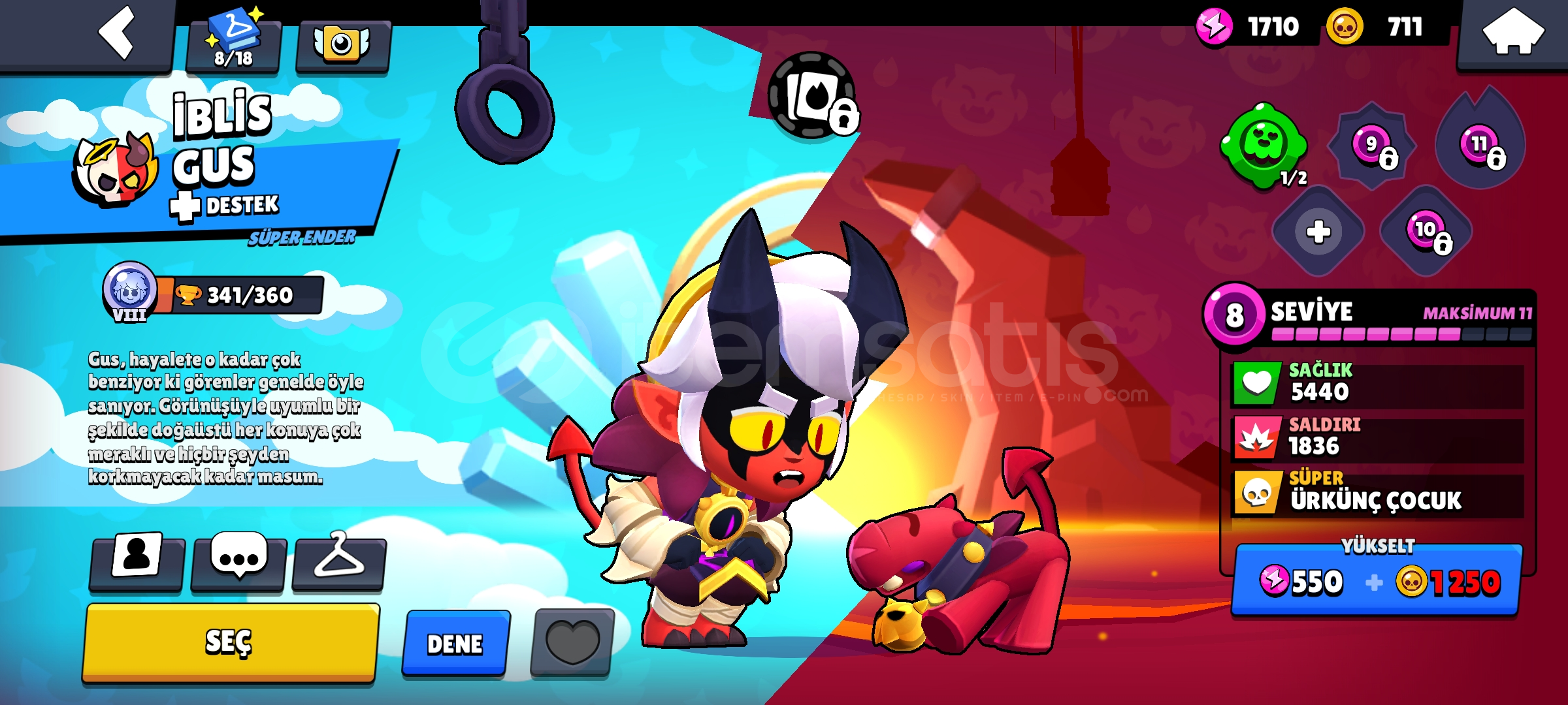 Fotoğraflarda hesabın başlıca güzel ve ilgili çekici kostümleri ek olarak da Ziggy yer almaktadır 17000 kupa, 55 karakter gayet iyi bir hesaptır efsanevi karakterleri de bulunuyor hesabın iadesi yoktur çalışan hesaptır maili değiştirilebilir ya da direkt teslim edilebilir ilanı alan bu bilgilendirmeleri kabul etmiş sayılır