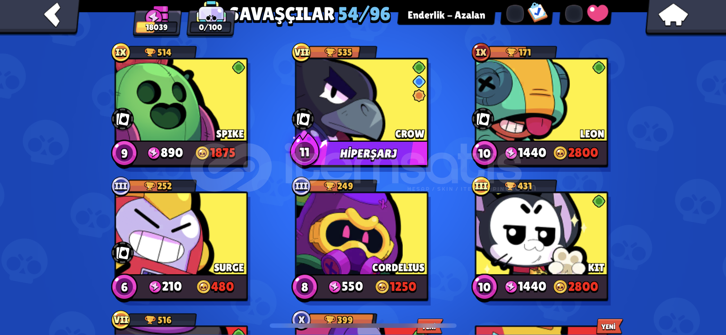 HESAP ÖZELLİKLERİHESABIMIZ  54 KARAKTERDİRHESABIMIZDA  MAX LEVEL KARAKTER BULUNMAKTADIRSKİN SAYILARI İSE 741 EFSANEVİ SKİN2 GİZEMLİ SKİN14 DESTANSI SKİN25 SÜPER ENDER SKİN32 ENDER SKİN VARDIRNEDEN BİZİ TERCİH ETMELİSİNİZÖNCELİK MÜŞTERİ MEMNUNİYETİHIZLI CEVAP/ DESTEK VERİMİNASIL TESLİM EDİLECEKTİRALDIĞINI...
