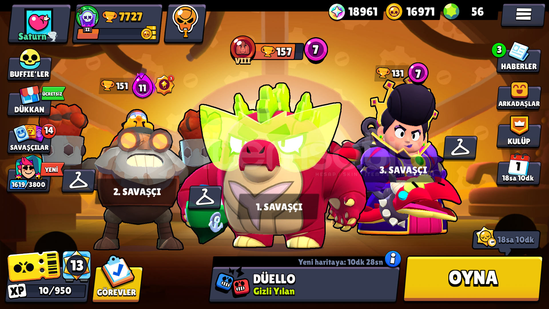 13 TANE 11 SEVİYE KARAKTER