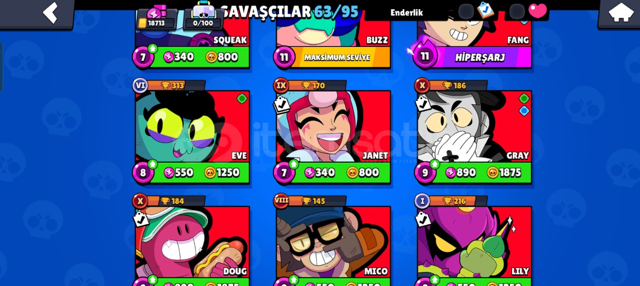 63 karakterli 9 efsanevi /13 gizemli / 23 destansı /10 süper ender / 9 ender savaşçı vardır38 ender kostüm / 27 süper ender kostüm /17 destansı kostüm / 1 gizemli kostüm / 1 efsanevi kostüm / 2 hiper şarj kostüm vardır14874 güç puanı / 6015 altın / 9 elmas vardır Hesap asla gitmez daha fazla bilgi için dm gelebilirsiniz sorunuz varsa.